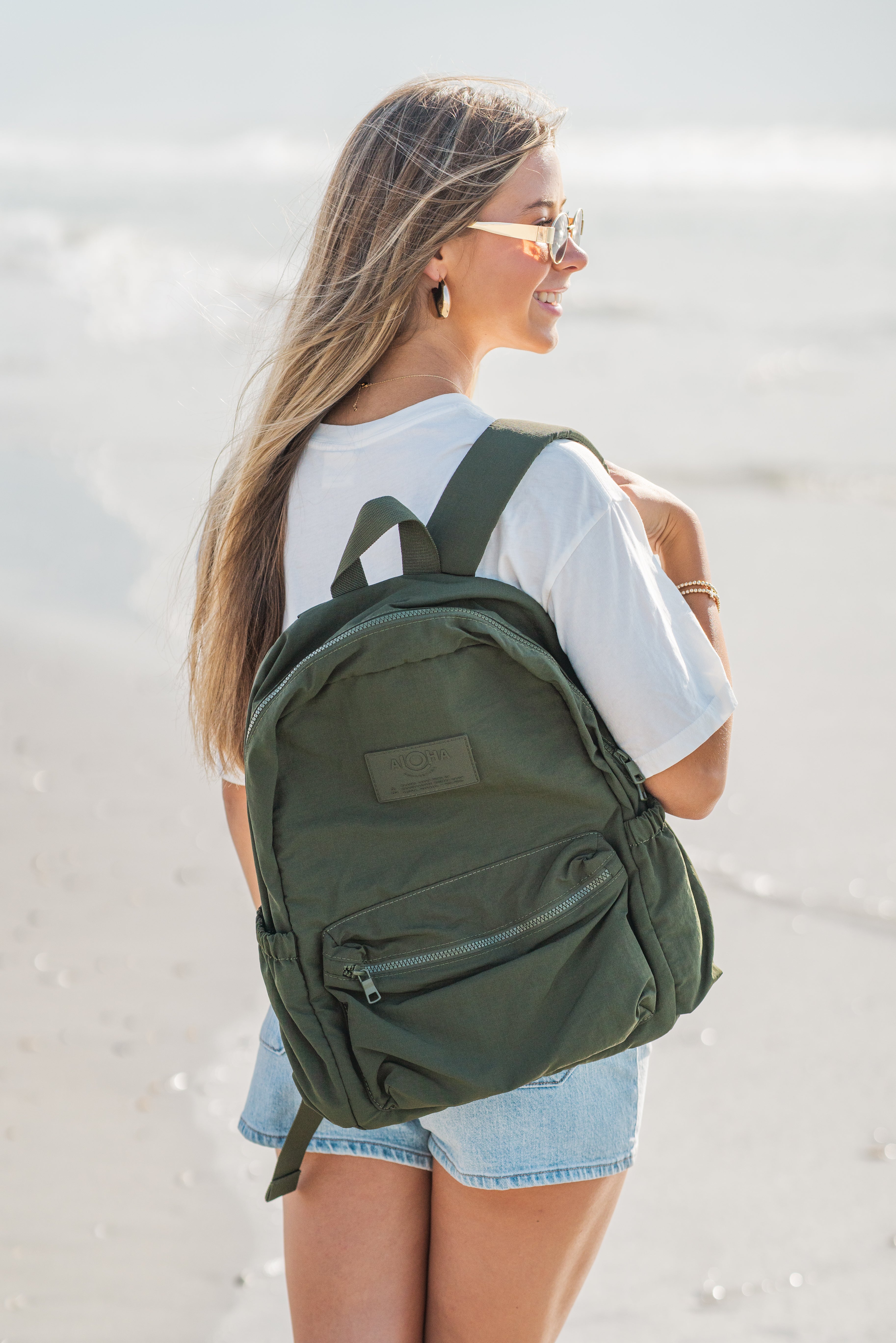 This lightweight ripstop nylon backpack seamlessly blends style and function. This backpack is your perfect on-the-go companion with its all-day comfort and convenience.