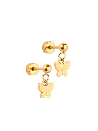 Add a touch of whimsy to your look with the Gold Dangle Flatback Stud Earrings. These studs feature tiny, glossy gold charms that dangle delicately from the stud, offering a playful and feminine touch in three different styles.