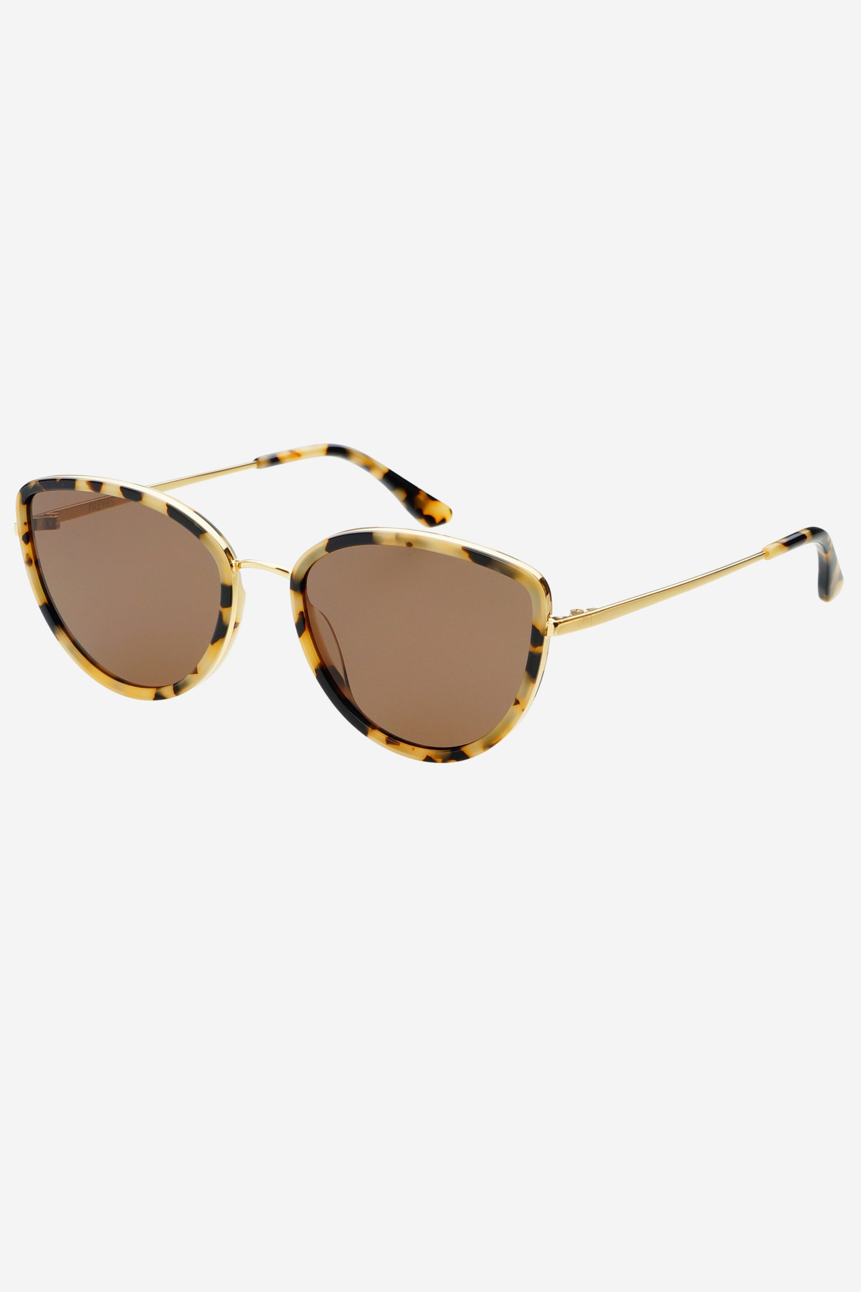 Add a touch of vintage glamour with these Tortoise Shell Cat-Eye Sunglasses. Featuring a sleek gold metal frame and warm brown lenses, they blend retro elegance with modern sophistication.