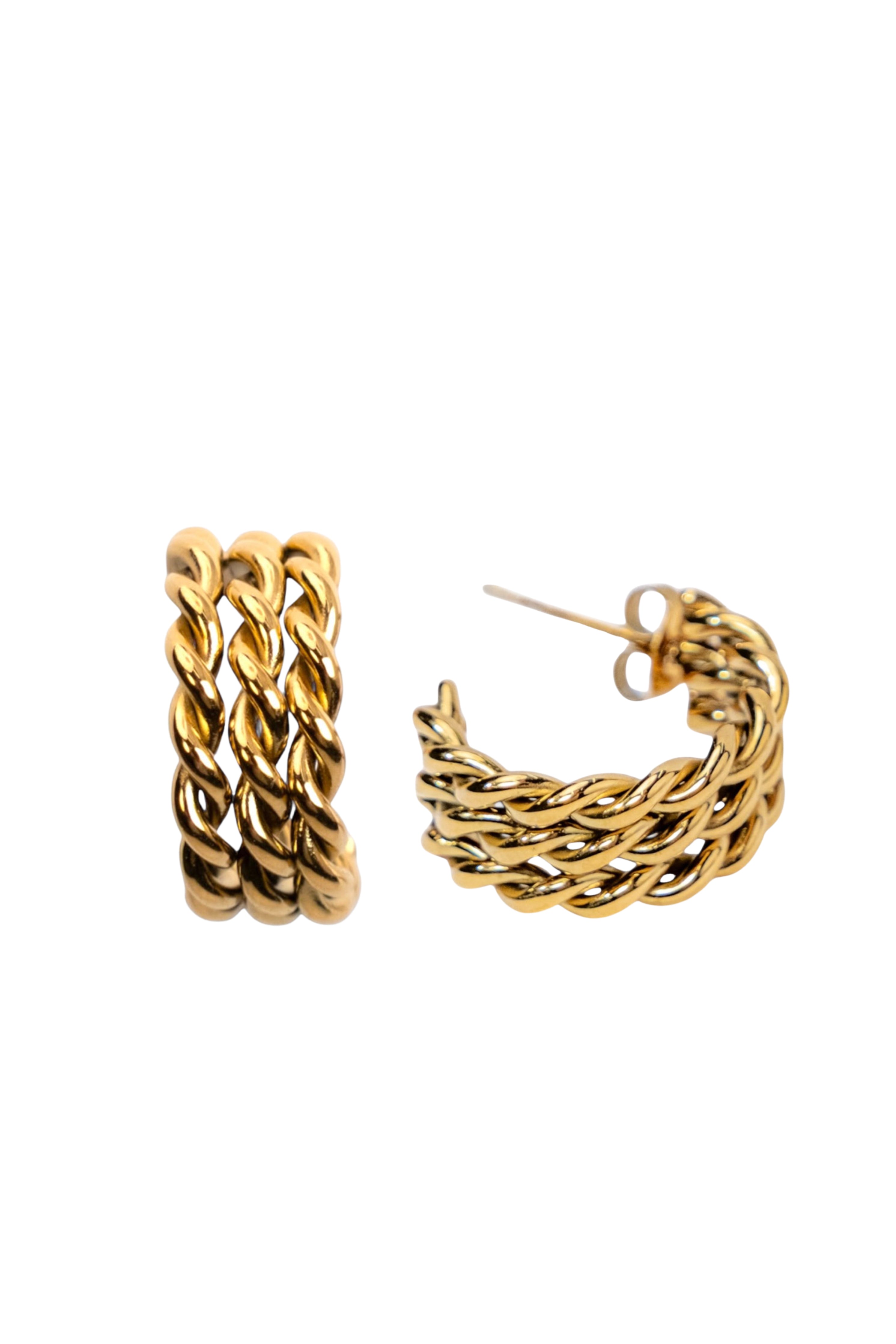 Chic and versatile, these mini hoops feature a rope-inspired design that adds subtle texture and dimension to a classic silhouette. Their polished gold finish makes them perfect for everyday wear, while their unique twist sets them apart from your standard hoops.