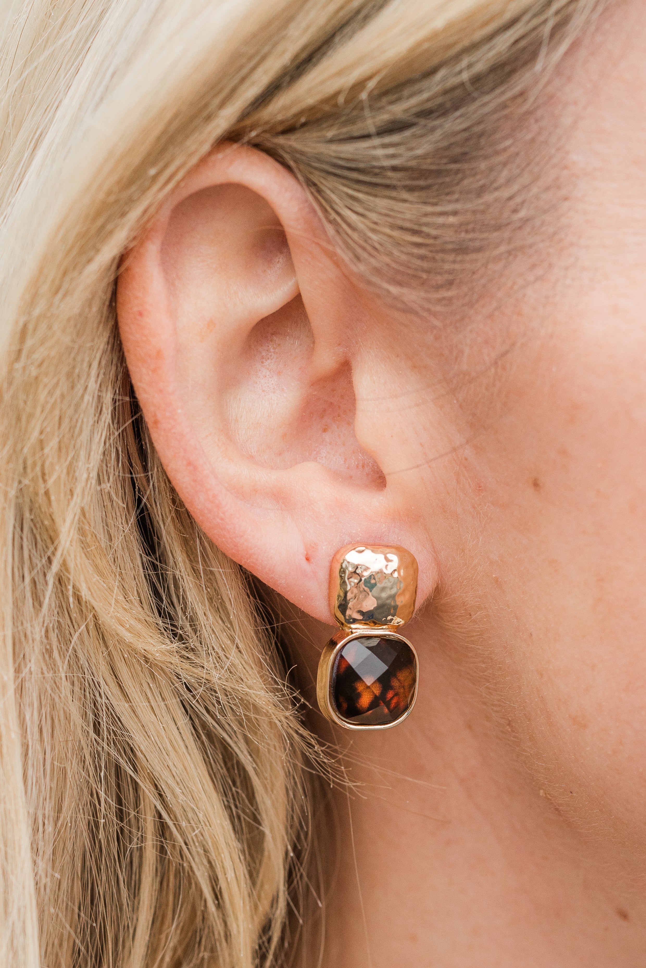 Tortoiseshell Faceted Stone Square Earrings