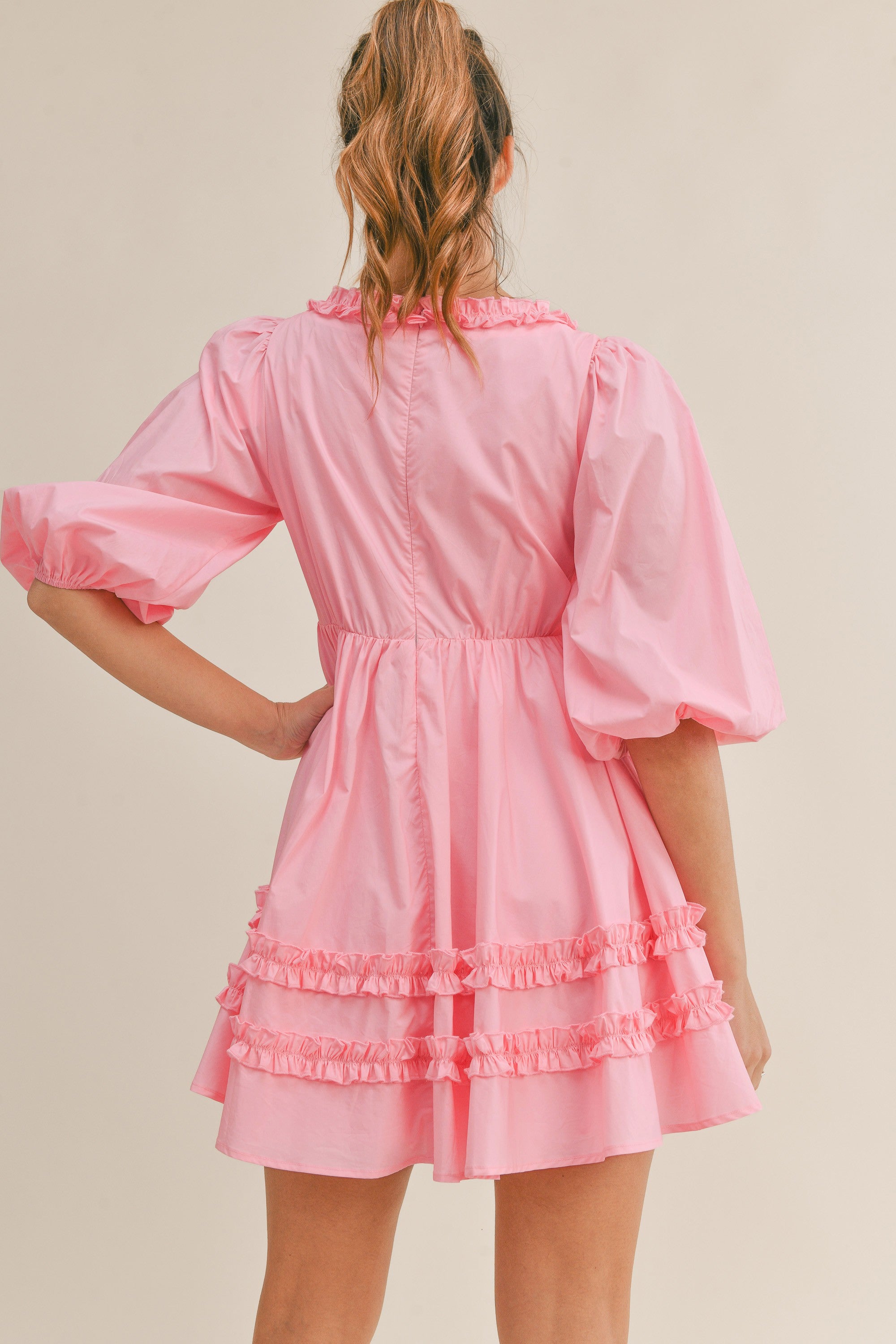 Puff Sleeve Ruffle Mini Dress