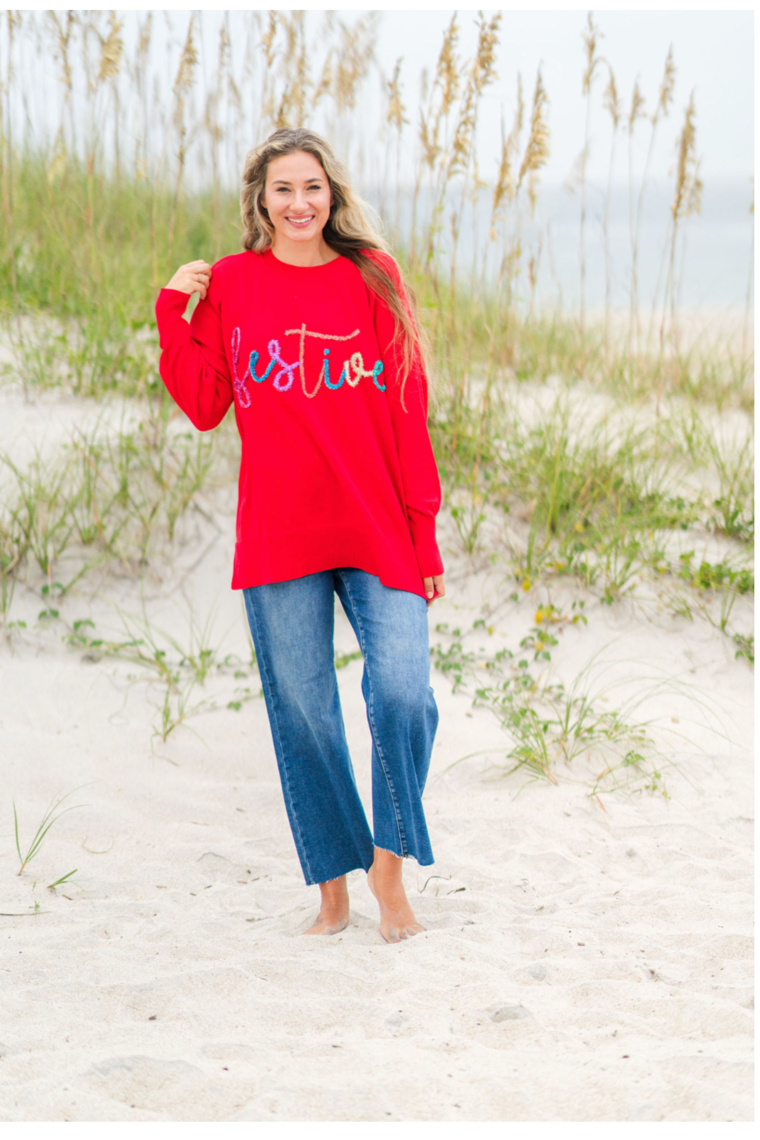 Celebrate the season in style with our "Festive" Sweater. Designed to bring warmth and holiday cheer, this cozy sweater features vibrant colors and a joyful design perfect for any holiday gathering.