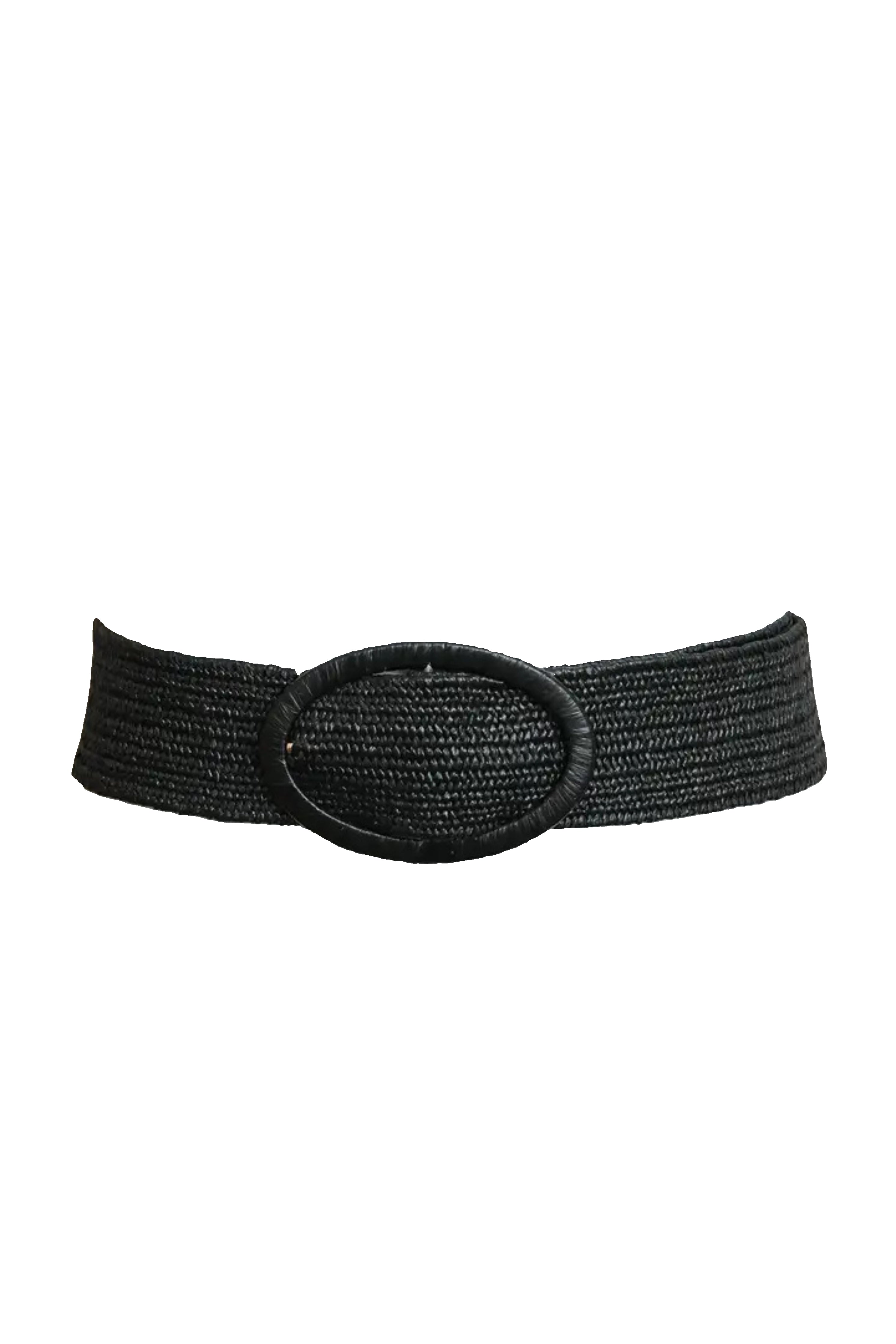 Add effortless style to your look with this wide woven stretch belt, available in natural beige and classic black. Designed with a textured finish and a statement oval buckle, this belt is perfect for cinching dresses, tunics, or high-waist bottoms.