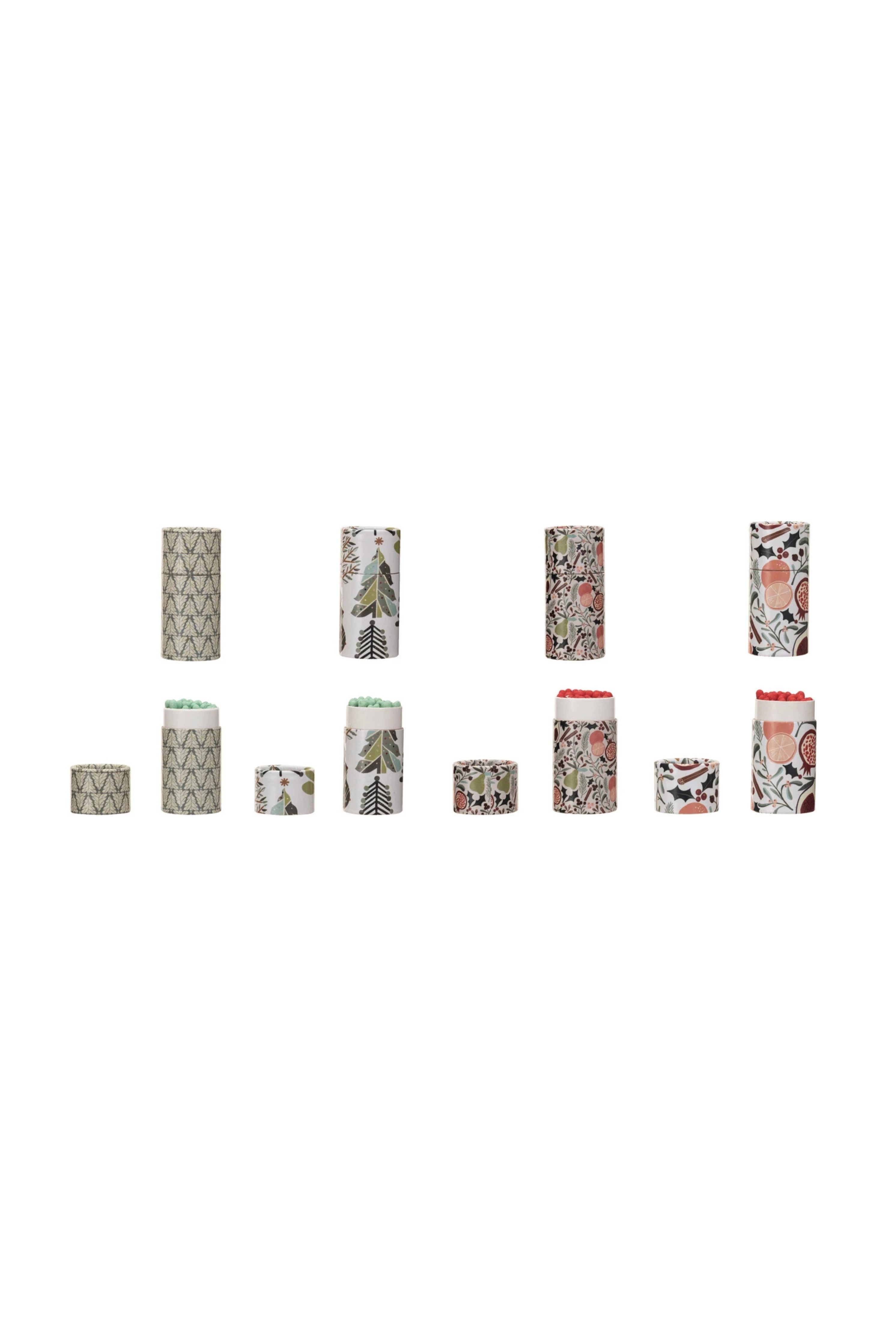 Light up the season with these festive safety matches, packaged in beautifully patterned tubes that double as décor. Each tube features a seasonal design, making them perfect for gifting or keeping on display beside your favorite candles.