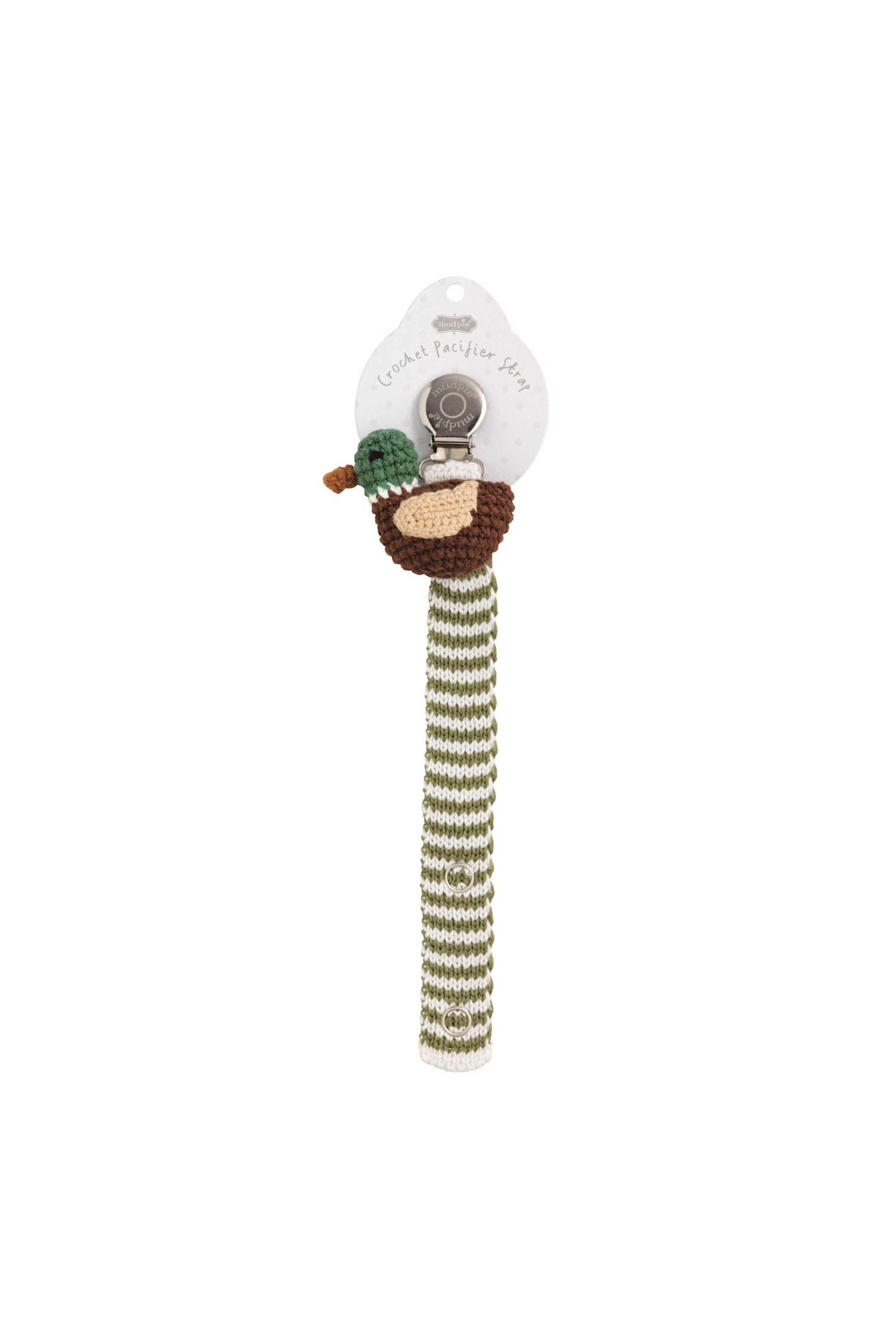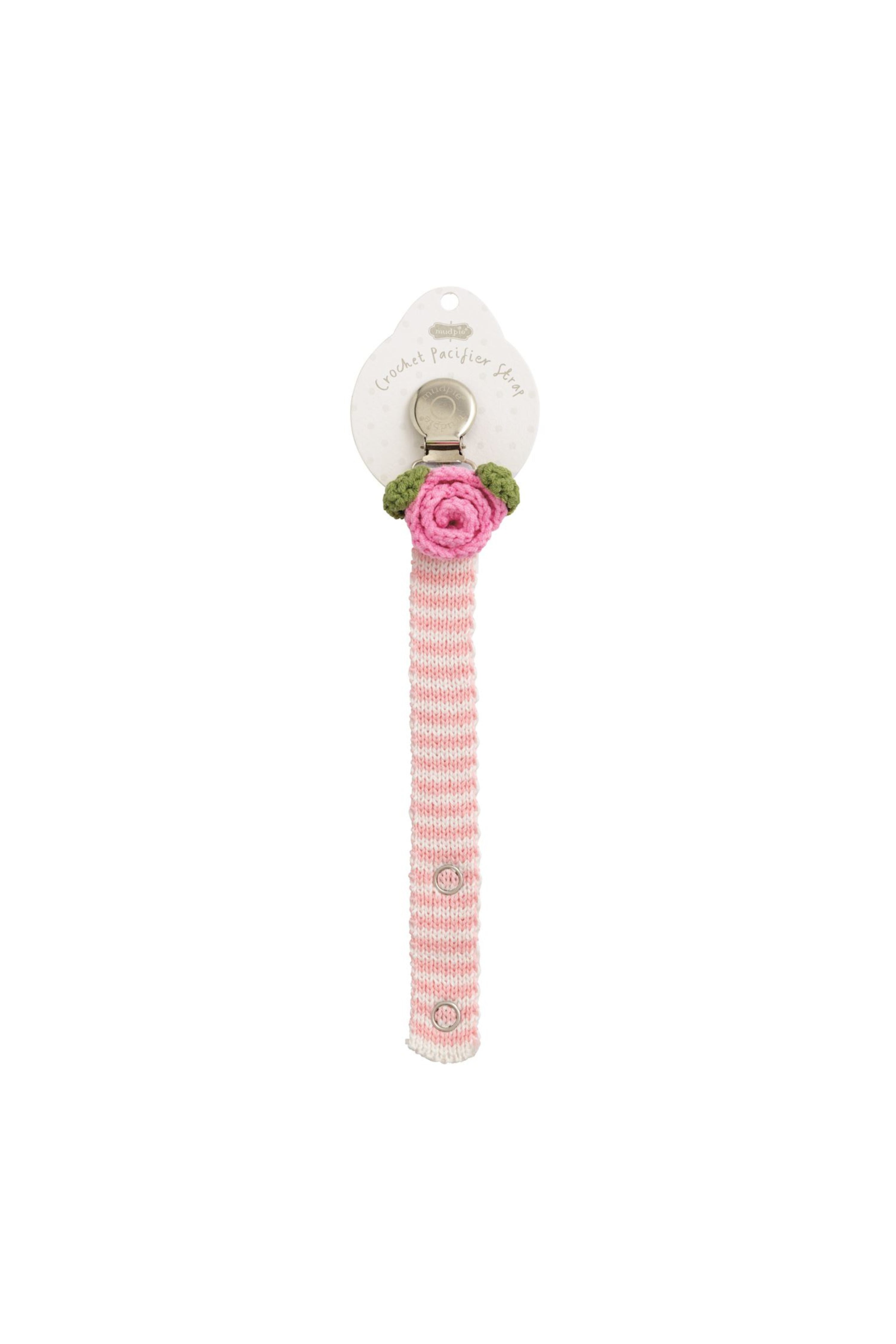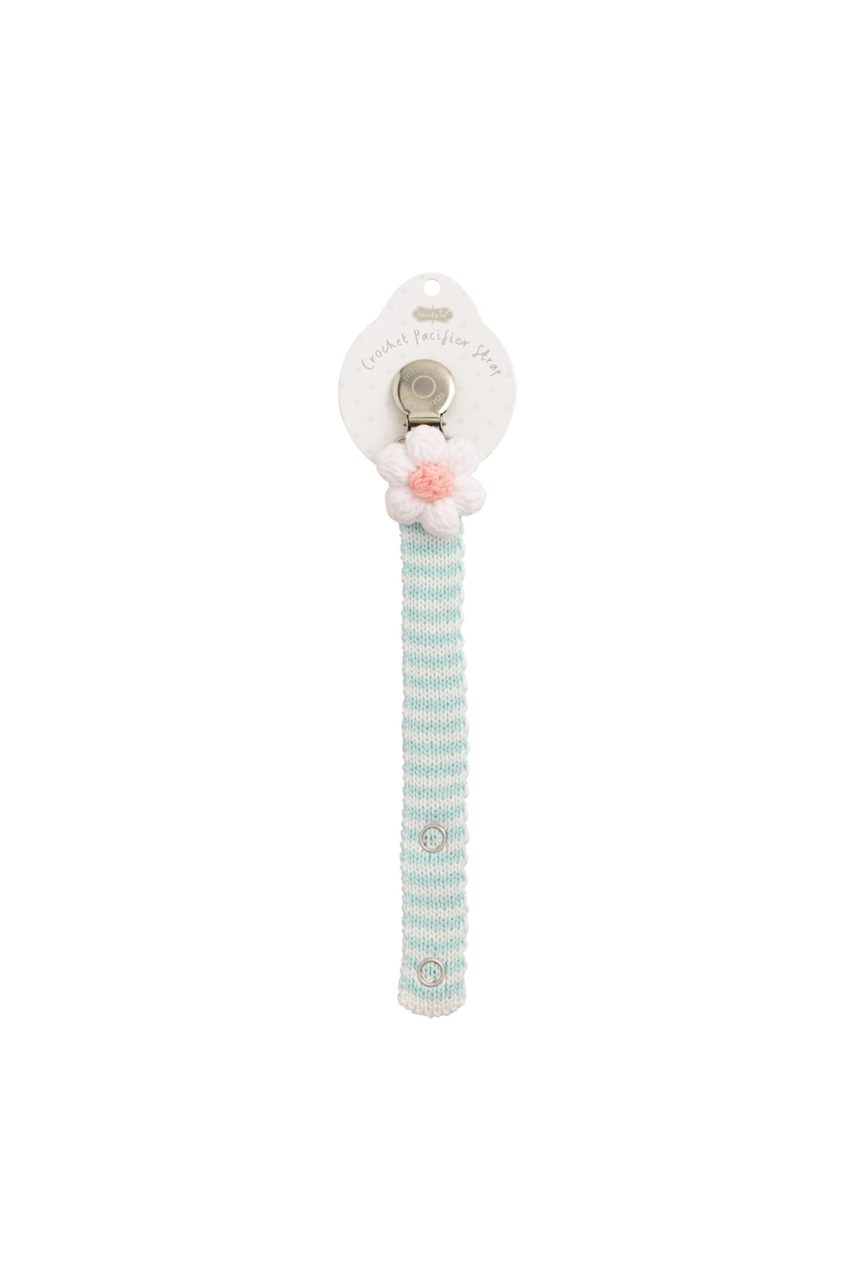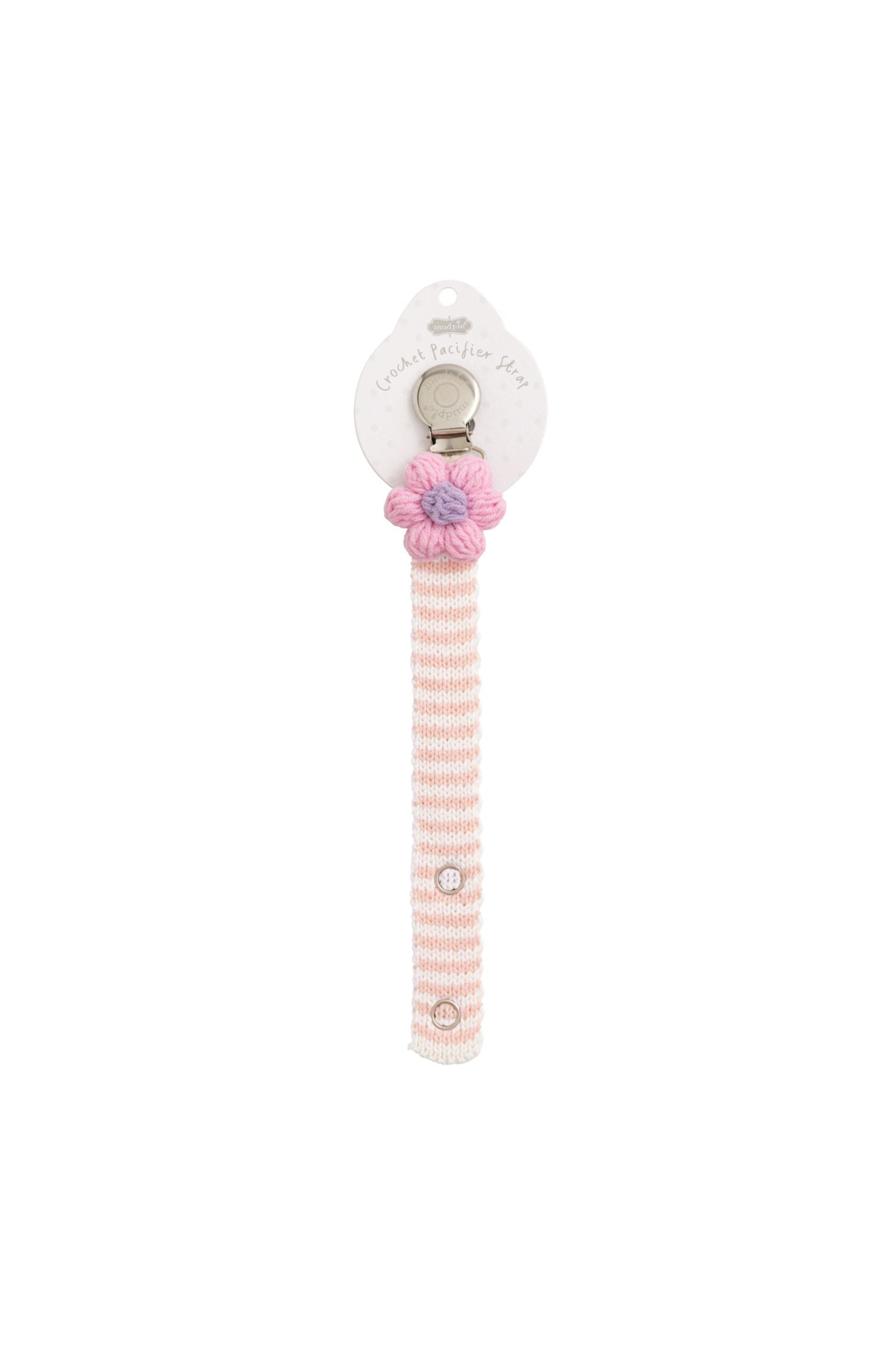 Delight in the charming elegance of our Crochet Pacy Strap, a perfect blend of style and functionality for your little one. This adorable accessory features a sweater knit stripe pacy strap, beautifully adorned with a dimensional crochet icon at the clip, adding a touch of sophistication to any outfit.