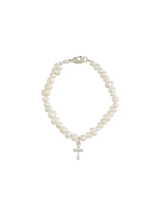 This dainty cross charm bracelet is the perfect combination of elegance and faith. The pearl bead bracelet adds a touch of sophistication, while the petite metal cross charm serves as a constant reminder of one's beliefs. The lobster clasp closure ensures secure and comfortable wear.