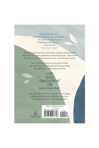 When the world feels like it's closing in, when the stresses of life threaten to stifle your contentment and steal your joy. . .there is one who offers breathing room for your soul—and His name is Jesus. These 200-plus devotions and prayers, inspired by Psalm 62:5-6, will fill your heart to overflowing with all the good things that come from a relationship with Him.