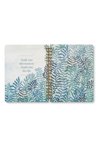 Calming artwork in a coastal color palette pairs with inspiring quotes throughout this notebook, inviting you to embrace this moment with mindfulness and intention.