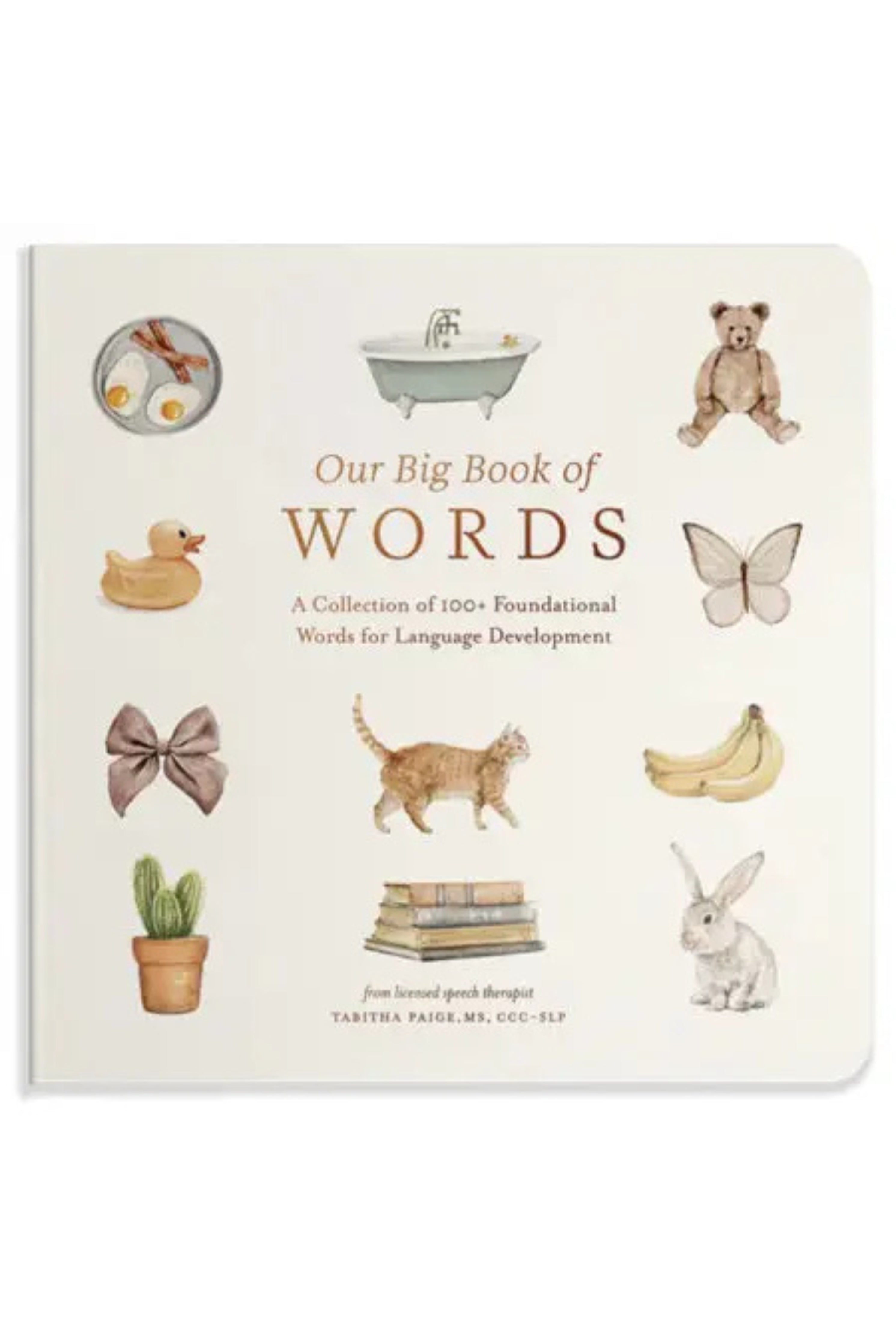 Our Big Book of First Words features charming watercolor illustrations and foundational first words that will help you build your child's vocabulary. Plus, the durable binding and board book pages will make it easy to read to your child again and again, whether at home or on the go!