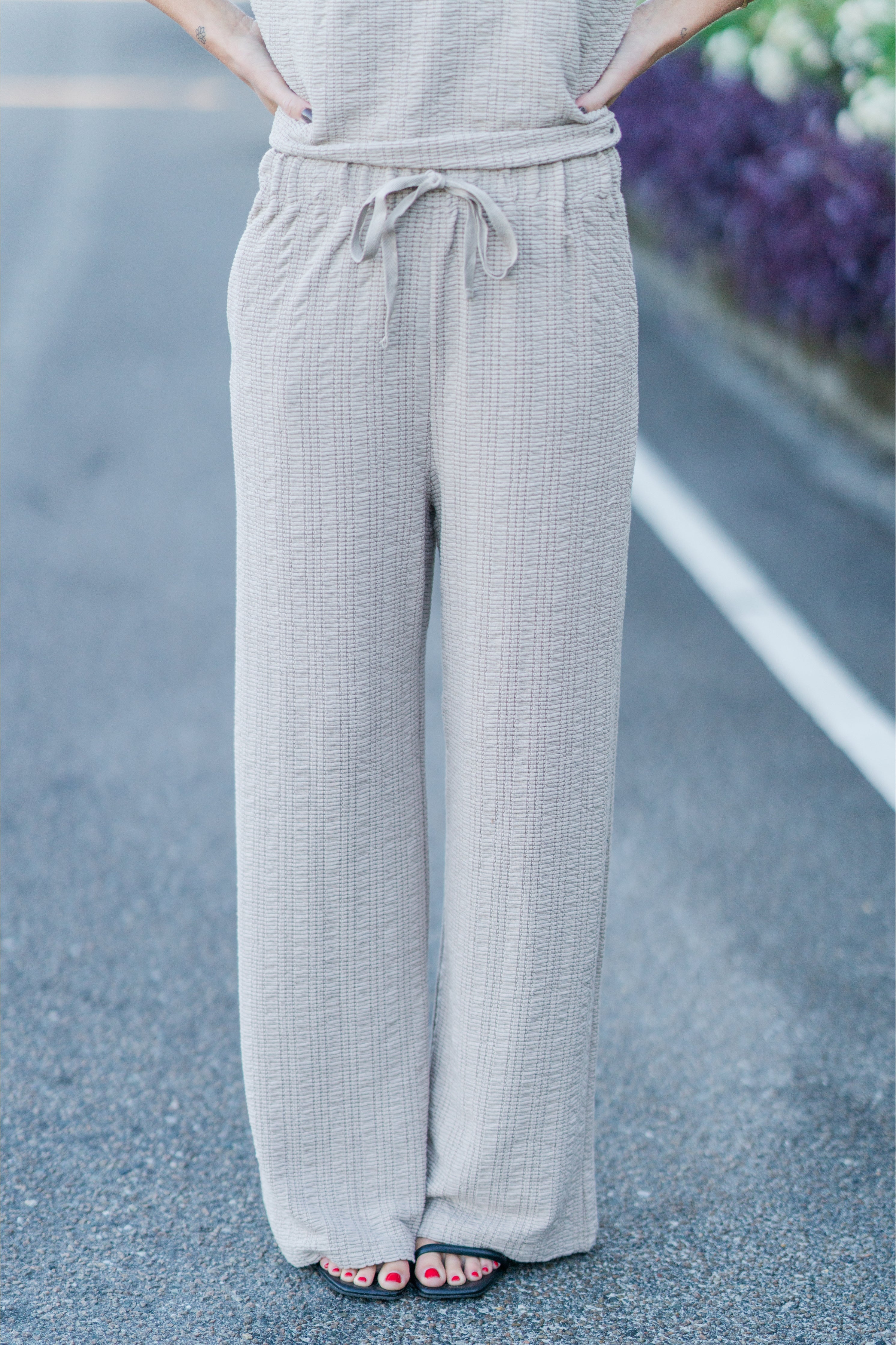 Relaxed yet refined, these Jacquard Knit Elastic Tie High Waist Wide Leg Pants are the perfect blend of comfort and style. Designed with a textured jacquard knit, elastic waistband, and adjustable drawstring tie, they offer an easy fit with a polished finish.