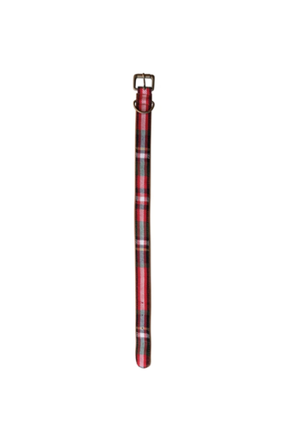 Four plaid dog collars in different patterns on a white background