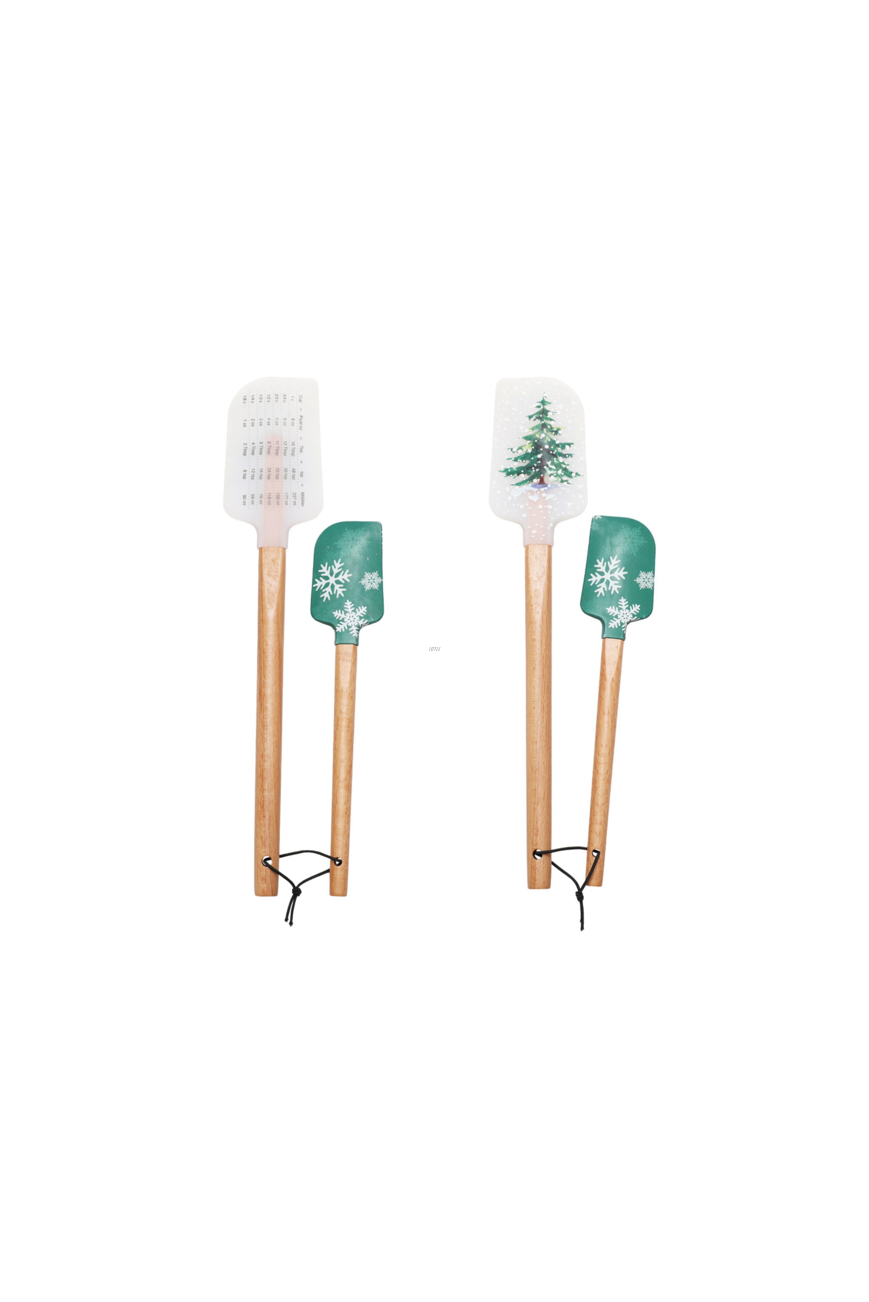 This Silicone & Wood Holiday Tree Spatula Set is perfect for festive baking and cooking. Each spatula features a seasonal design, from snowflakes to Christmas trees, paired with sturdy wooden handles for durability.