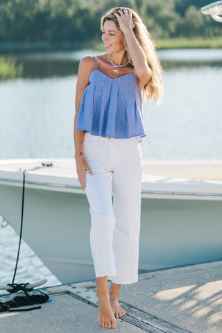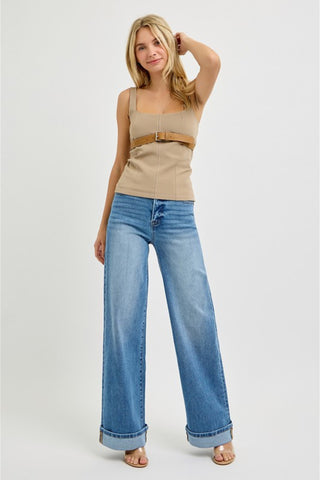 Ribbed Contrast Trim Crop Tank