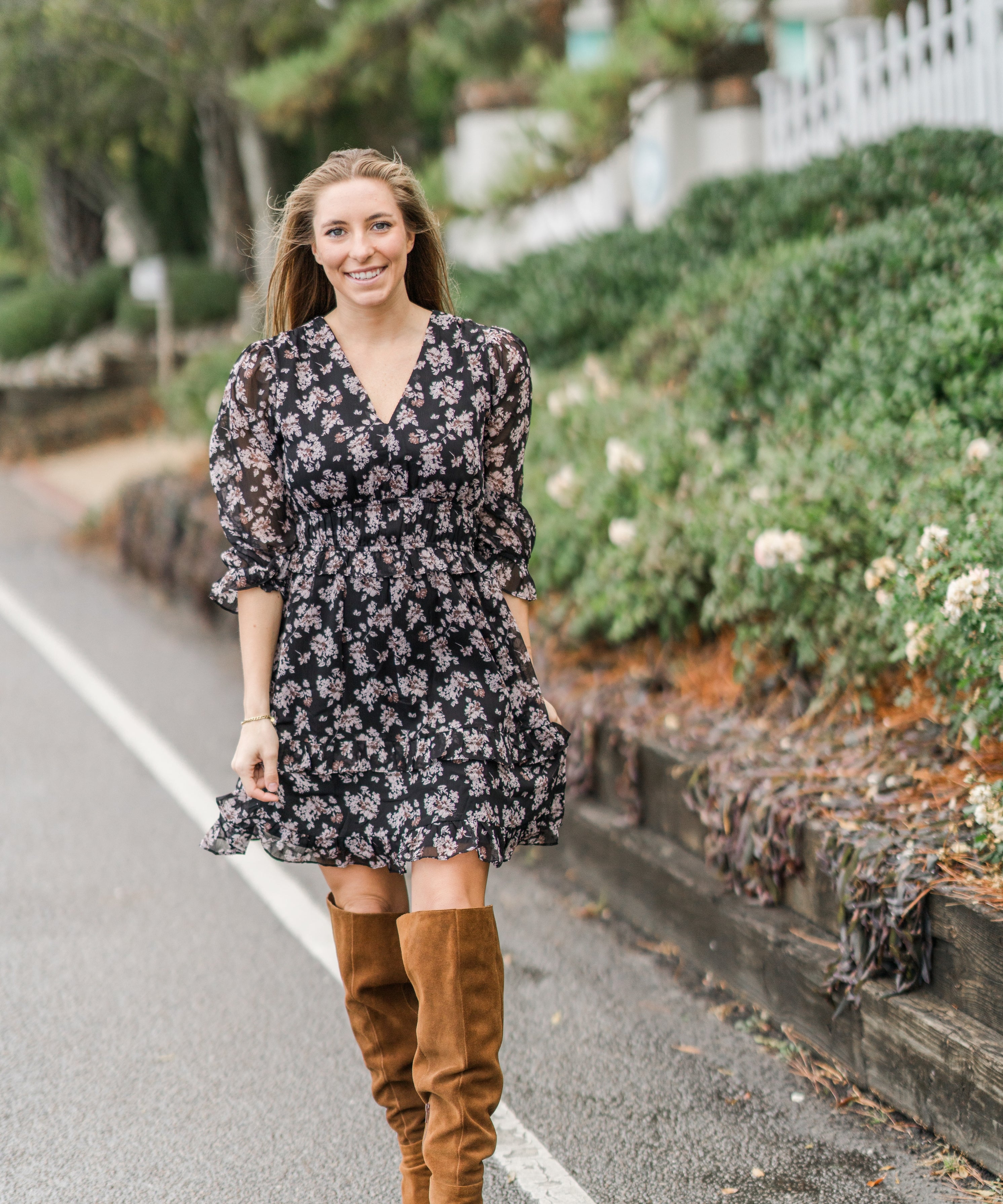 Tie V-Neck Long Sleeve Cinched Waist Midi Dress