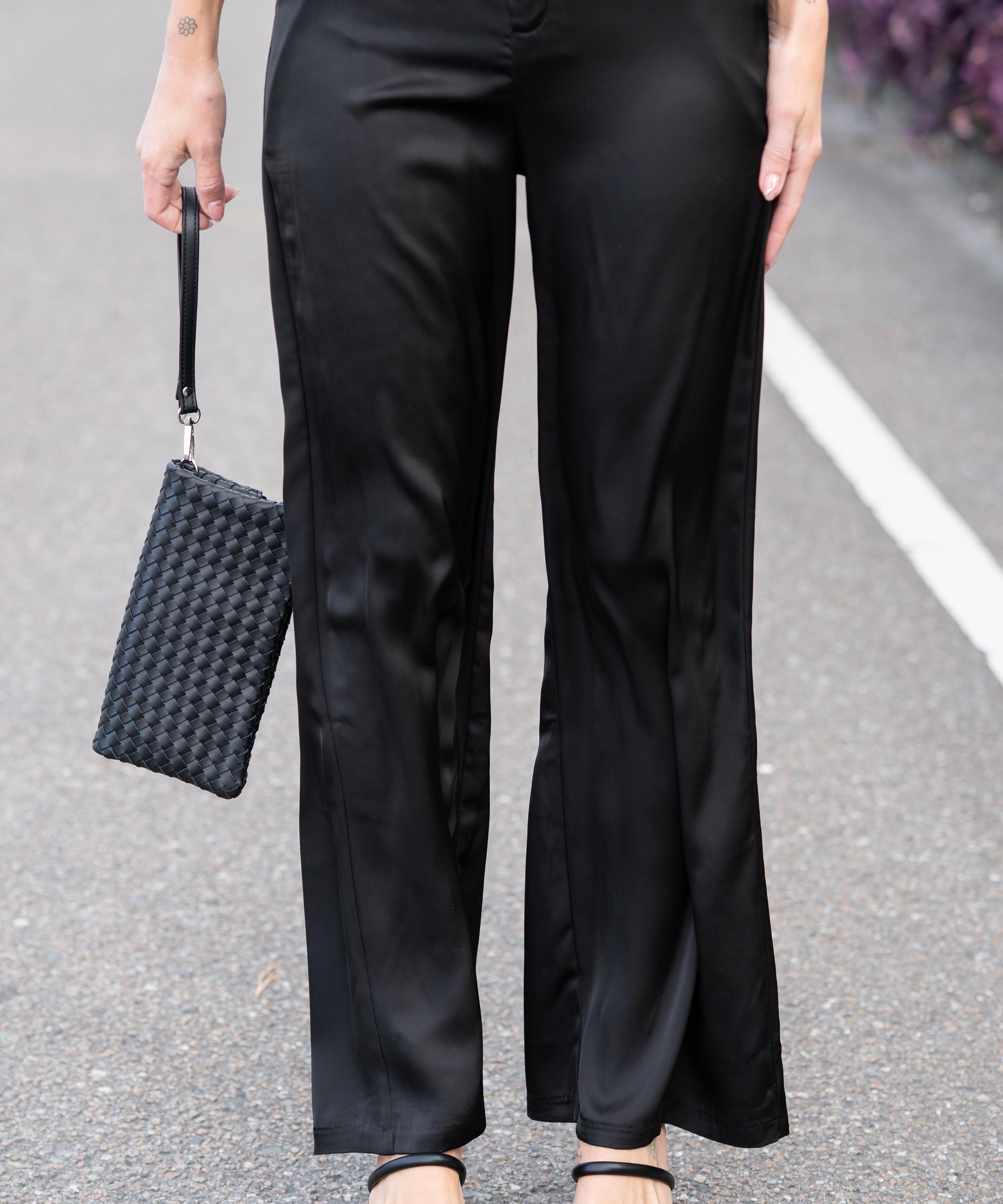 High-Waist Wide Leg Satin Dress Pants