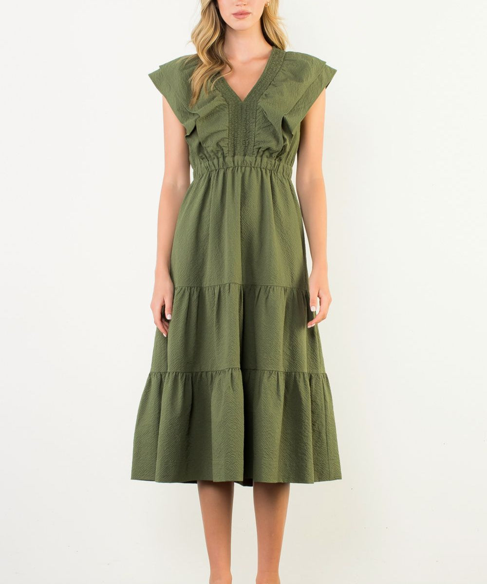 Flutter Sleeve Textured Tiered Maxi Dress