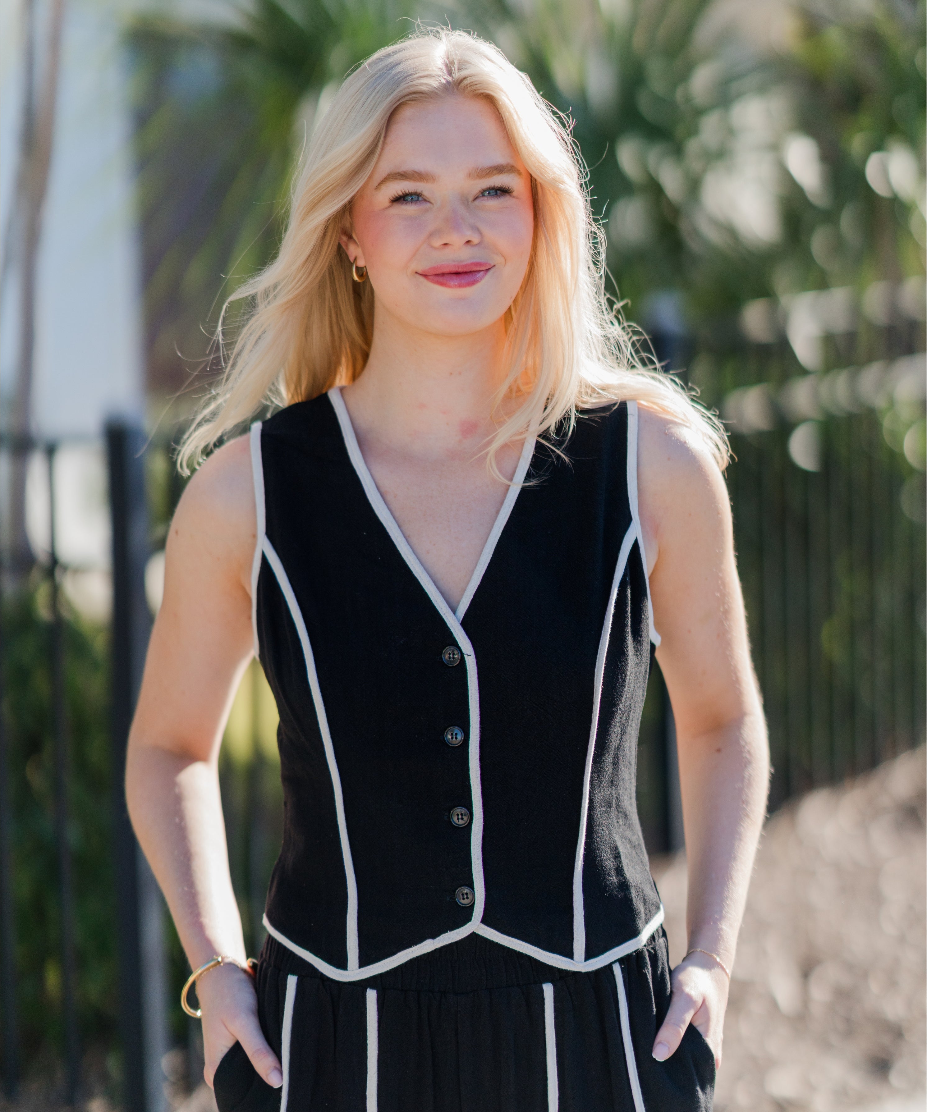 Contrast Piped Button Vest Top