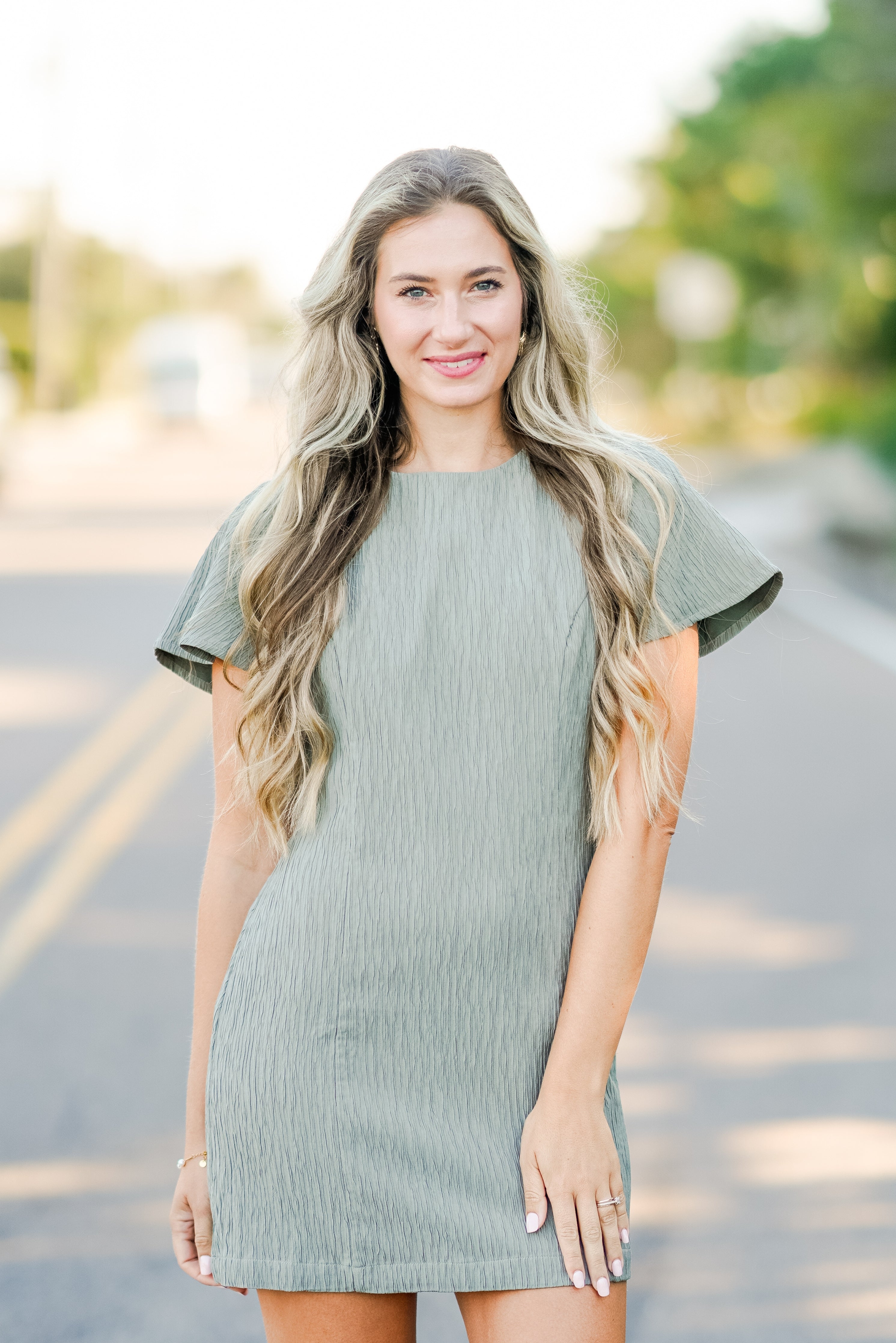 Crafted from a novelty woven material with texture, the Celene Textured Back Cut Out Mini Dress features a crew neck, short sleeves, and a hidden zipper closure at the back along with a cut-out detail and adjustable drawstring. The princess seam detailing adds figure-flattering shape.