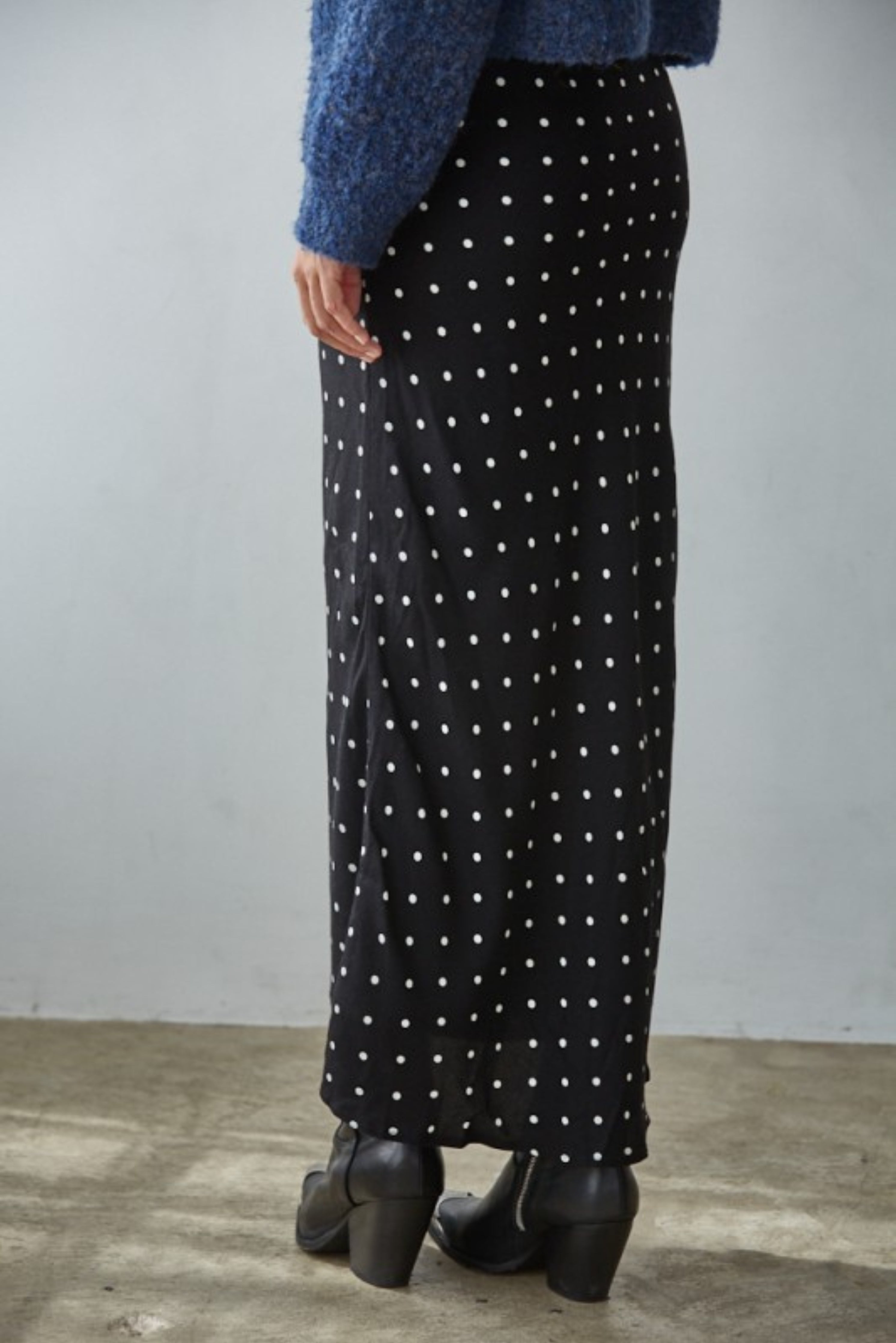 Add timeless charm to your wardrobe with this Polka Dot Slip Skirt. Featuring a flattering straight silhouette with a subtle drape, this versatile piece effortlessly transitions from casual days to chic evenings. Pair it with boots, sneakers, or heels for endless styling options.
