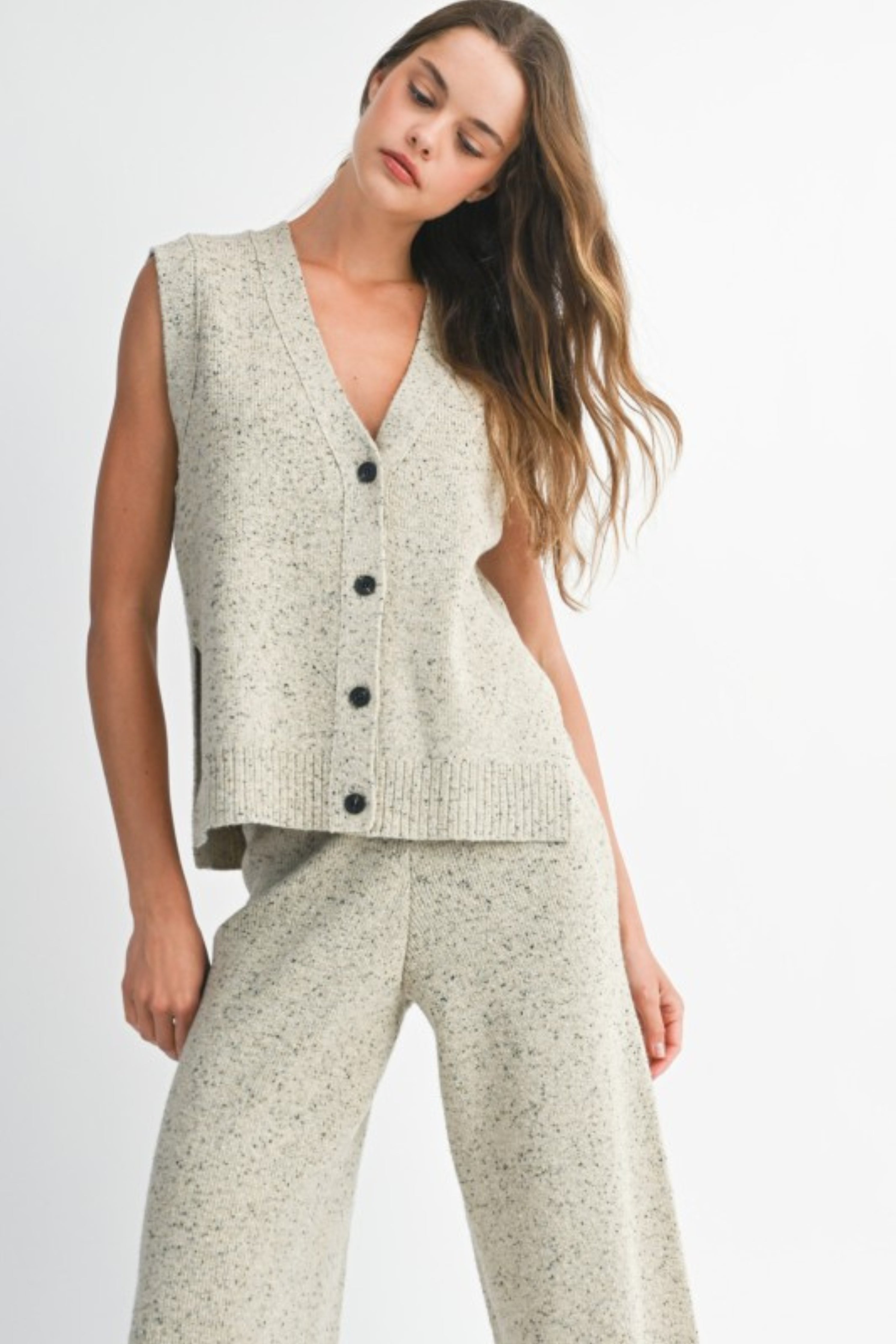 Stay effortlessly cozy and chic in the Relaxed Fit Sleeveless Button Down Knit Vest. Designed with a relaxed fit and soft textured knit and comfort with minimalist style.