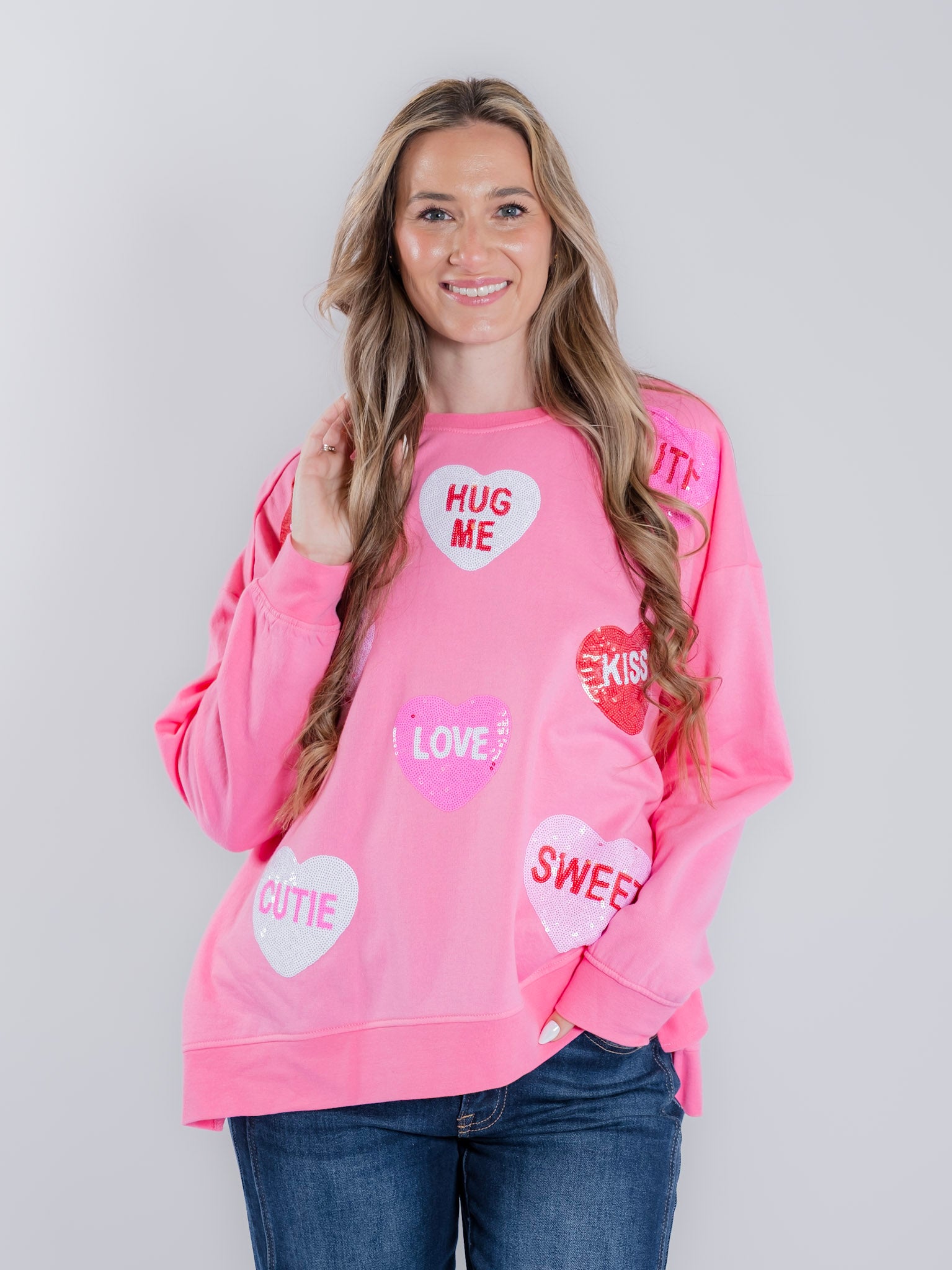 The Valentine Sparkle Sweatshirt is a stylish and comfortable addition to your wardrobe, perfect for adding a touch of glamour to any casual outfit. Crafted from a high-quality cotton blend, this sweatshirt offers a soft and cozy feel, ensuring all-day comfort. The eye-catching sequin appliqués add a dazzling sparkle, making it ideal for special occasions or simply brightening up your everyday look.
