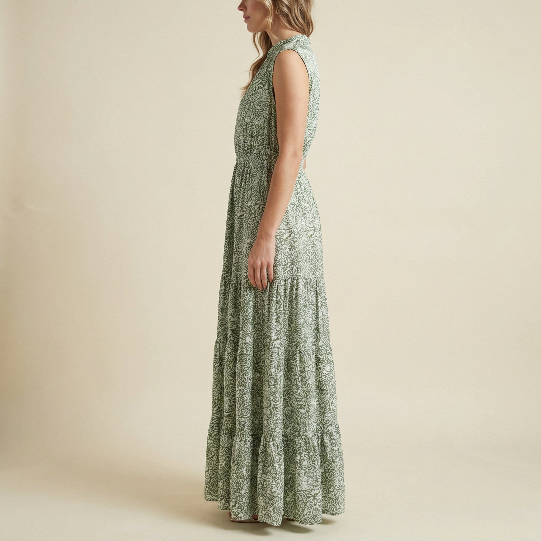 Effortlessly elegant with a timeless silhouette, the Sagebrook Sleeveless Maxi Dress is designed for warm days that call for polished ease. Featuring a soft green botanical print, this maxi dress is styled with a sleeveless bodice, a flattering v-neckline, and a cinched waist that flows into a full-length skirt.