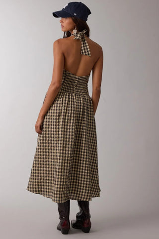 Gingham Smocked Waist Tiered Maxi Dress with Adjustable Spaghetti Straps