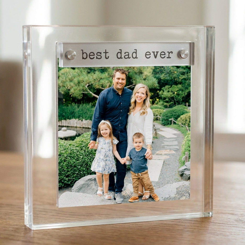 Best Dad Ever Mini Acrylic Frame Celebrate the man who does it all with this charming mini acrylic frame. Perfect for desks, nightstands, or shelves, this compact keepsake displays a heartfelt message that captures appreciation in style.