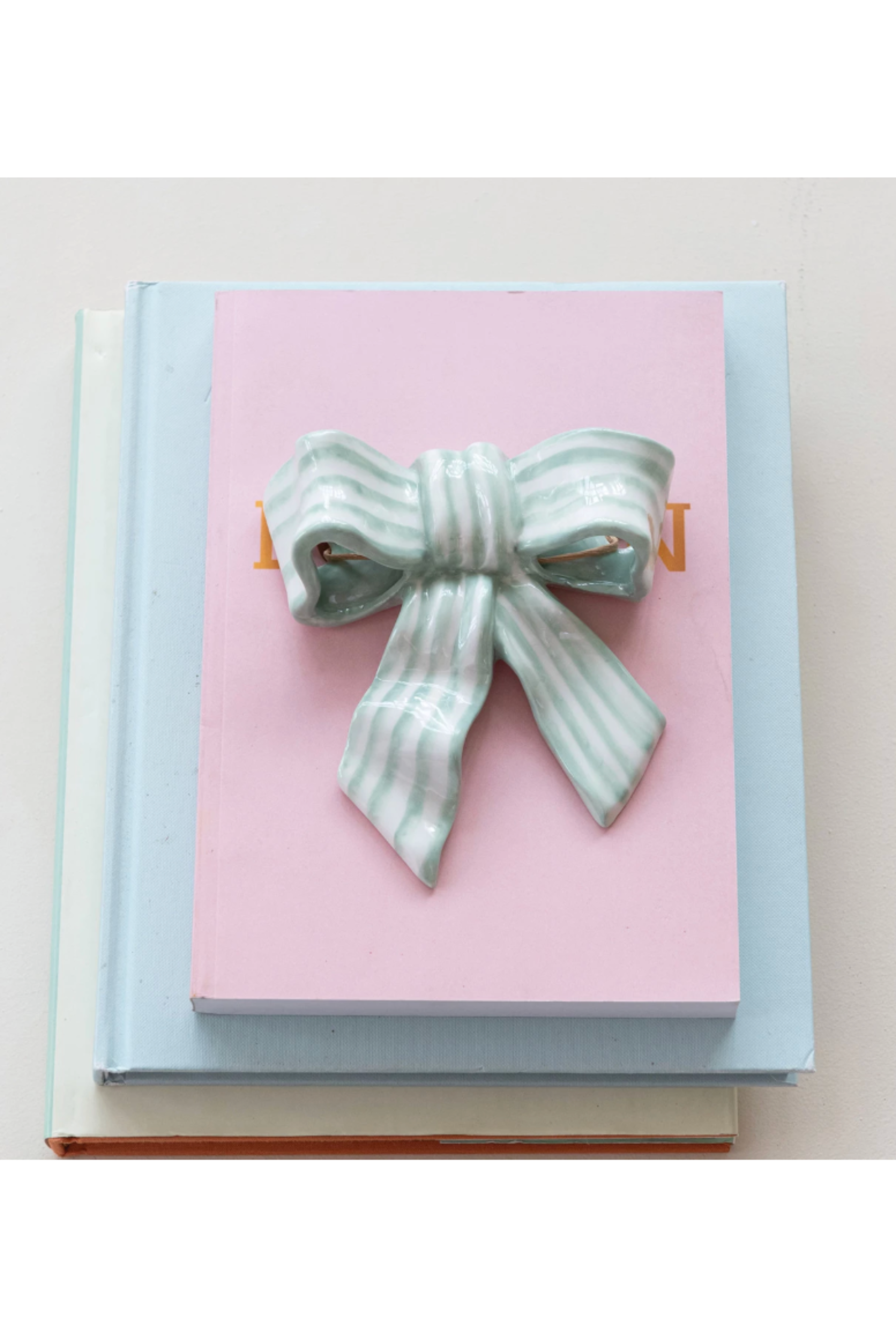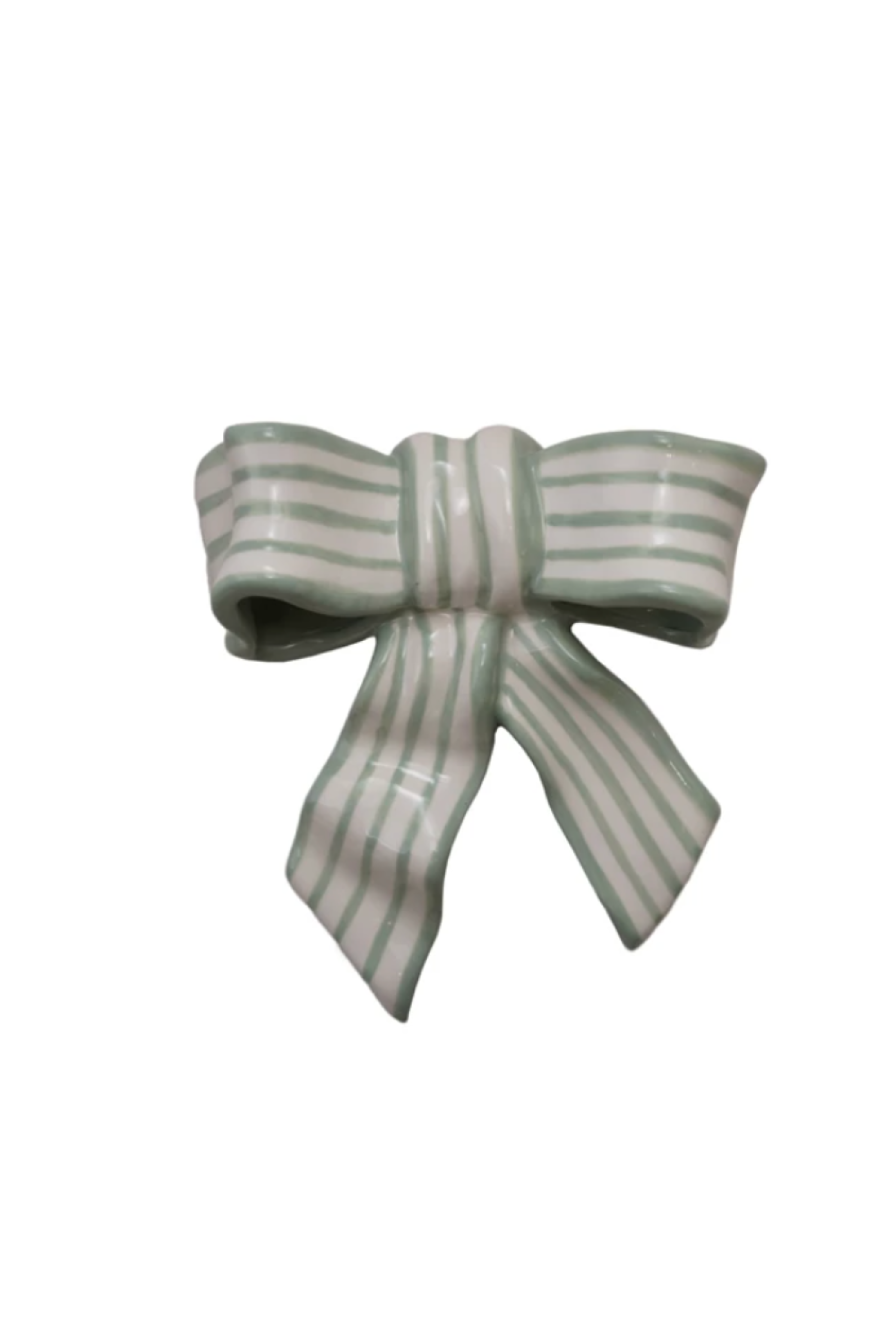 This decorative bow-shaped accent features a sculptural design with a glossy, hand-finished look that adds charm to shelves, trays, or tabletops. Its playful yet classic silhouette makes it easy to style in seasonal or everyday décor.