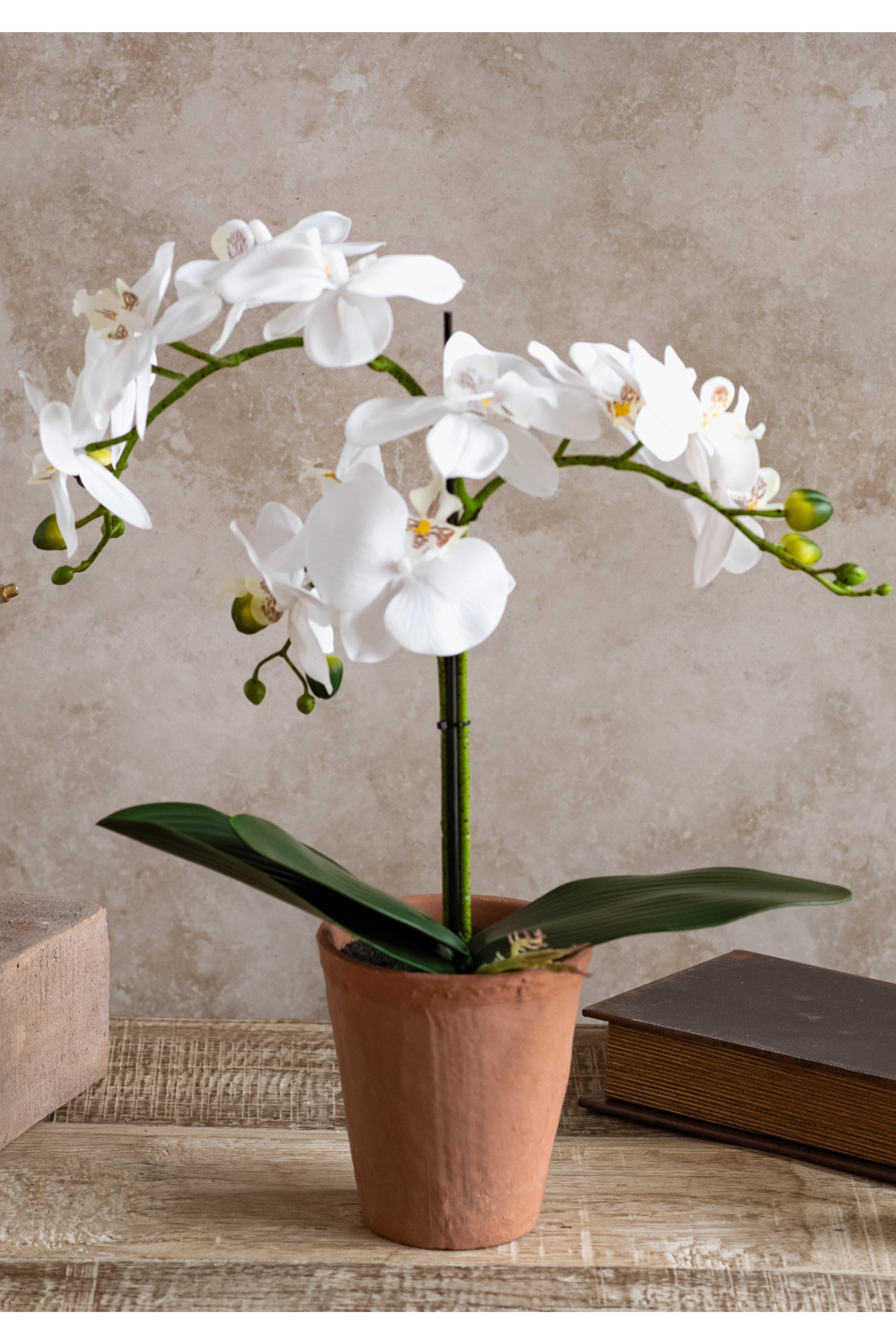 Bring timeless elegance to any space with this White Orchid Terra Cotta Pot. Handcrafted from natural terra cotta, it combines classic charm with practical functionality.