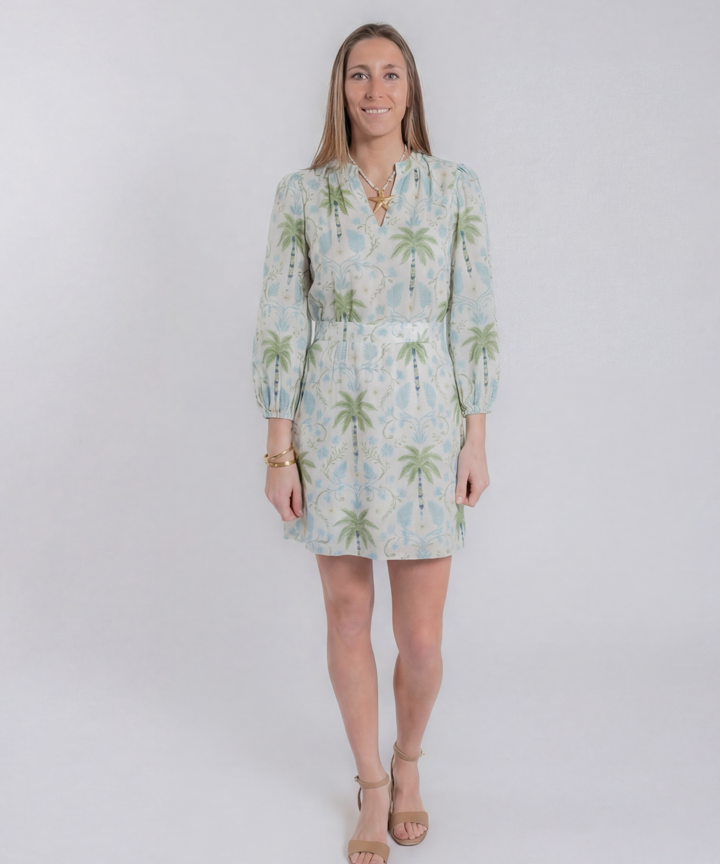Green Palm Long Sleeve Mini Dress - Only a Few Left