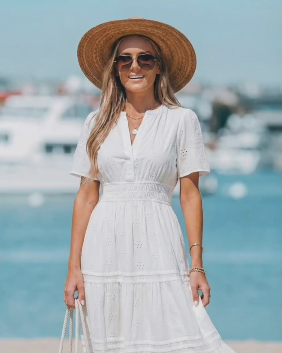 White Eyelet V-Neck Maxi Dress - Selling Fast