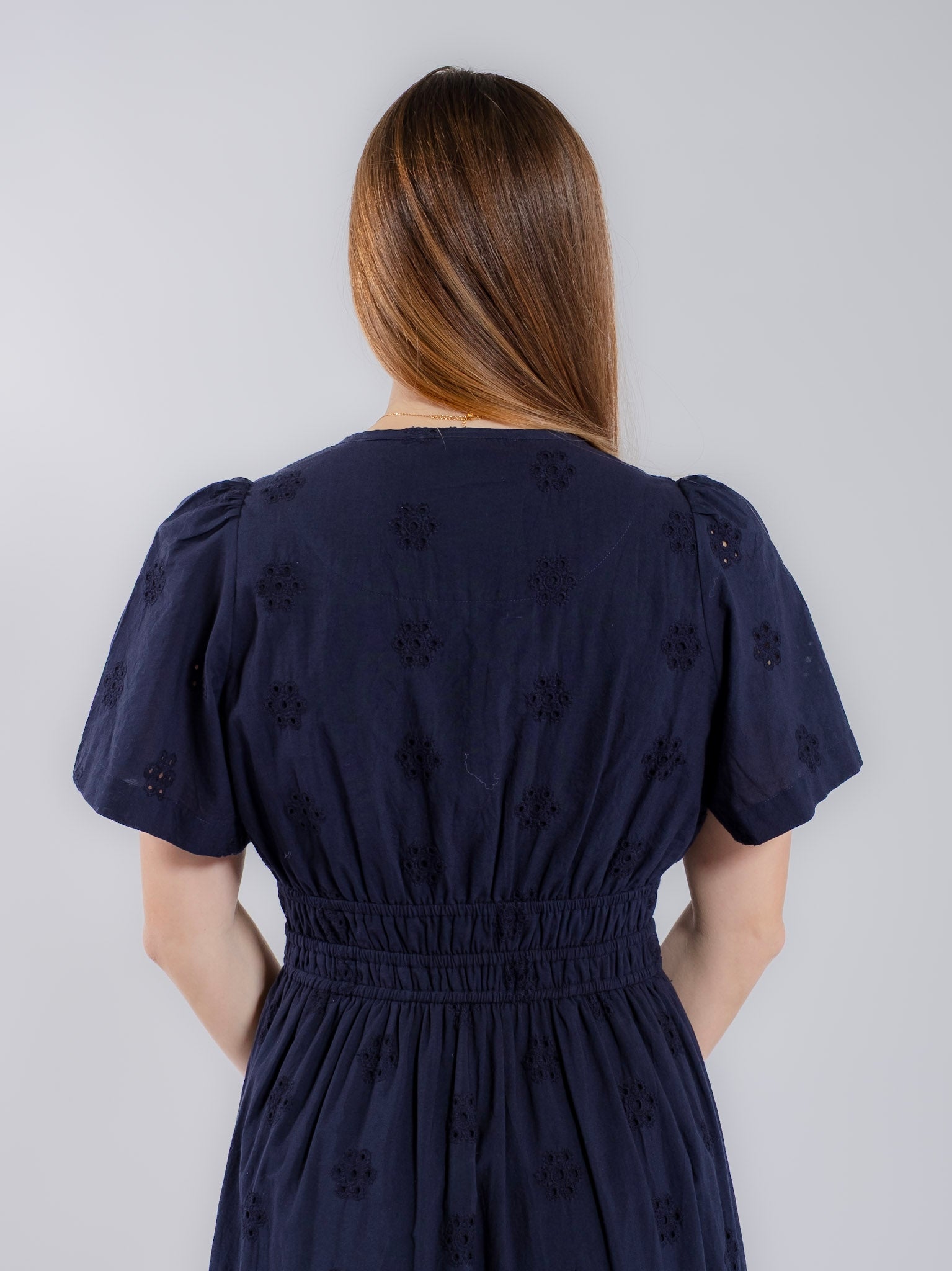 Navy Eyelet V-Neck Maxi Dress - Low Stock