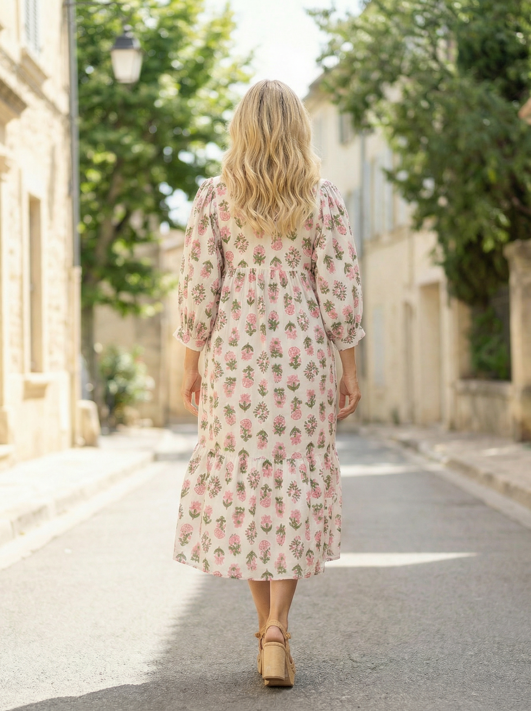 The Waylon Midi Dress is a stylish and versatile addition to any wardrobe, crafted from 100% cotton cambric for a soft and breathable feel. This elegant midi dress showcases a flattering V-neckline adorned with a delicate ruffle collar, adding a touch of femininity and charm.