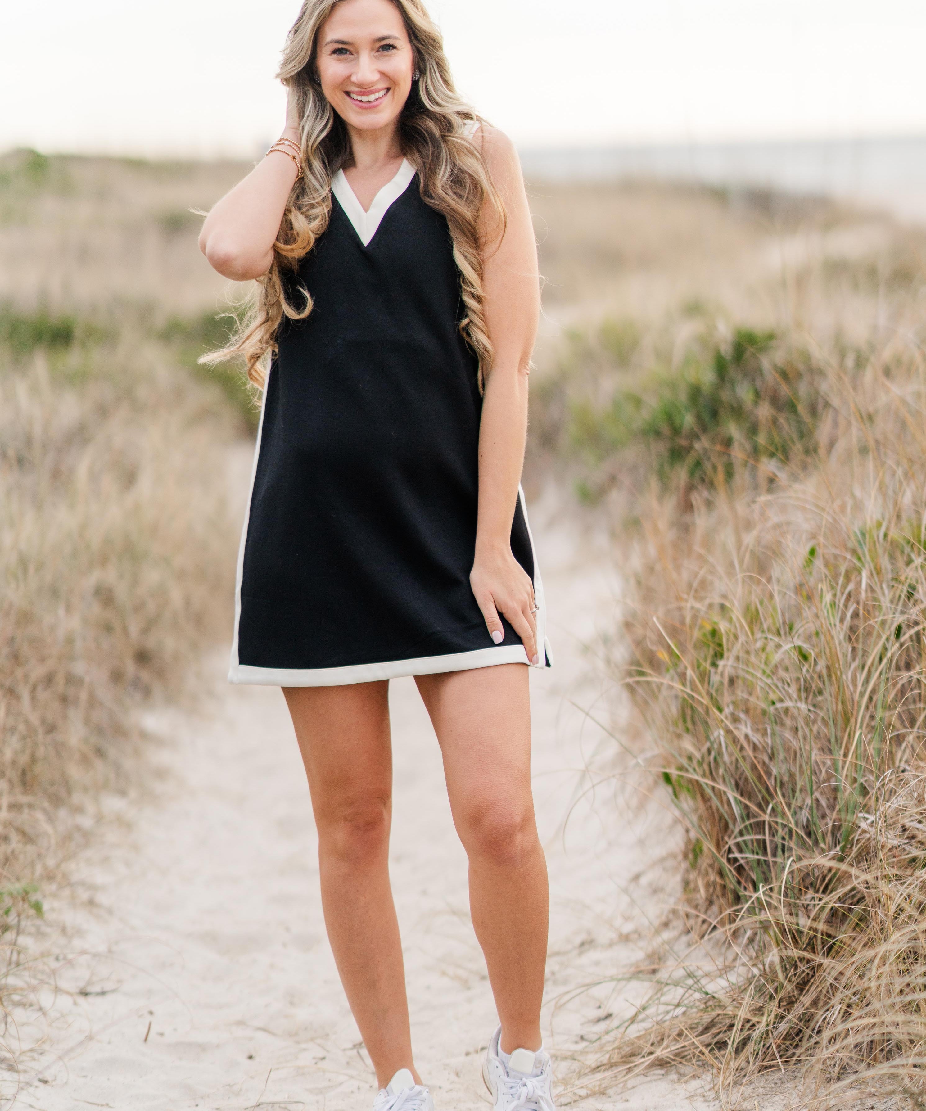 Black V-Neck Knit Mini Dress