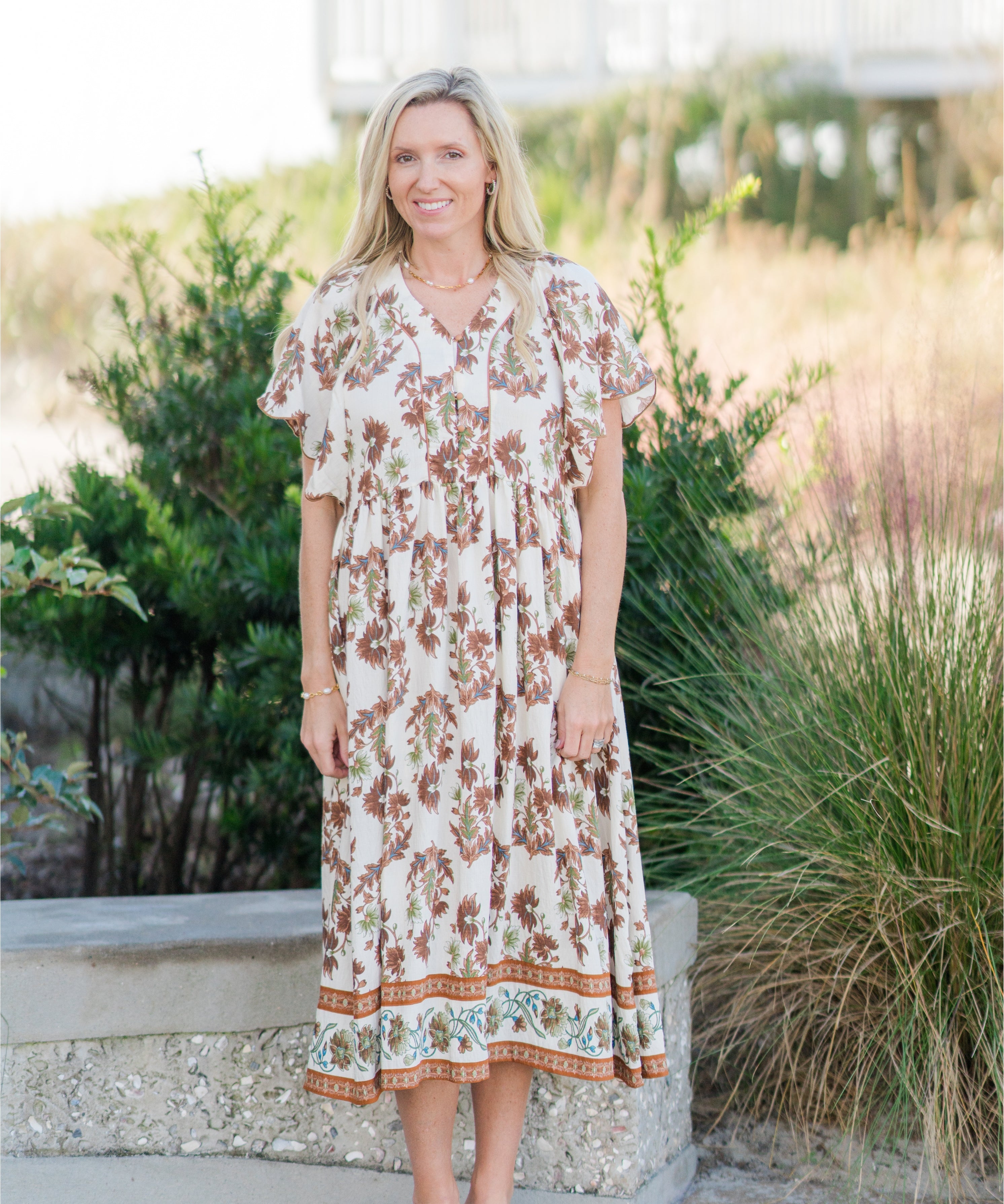 Floral Printed V-Neck Midi Dress