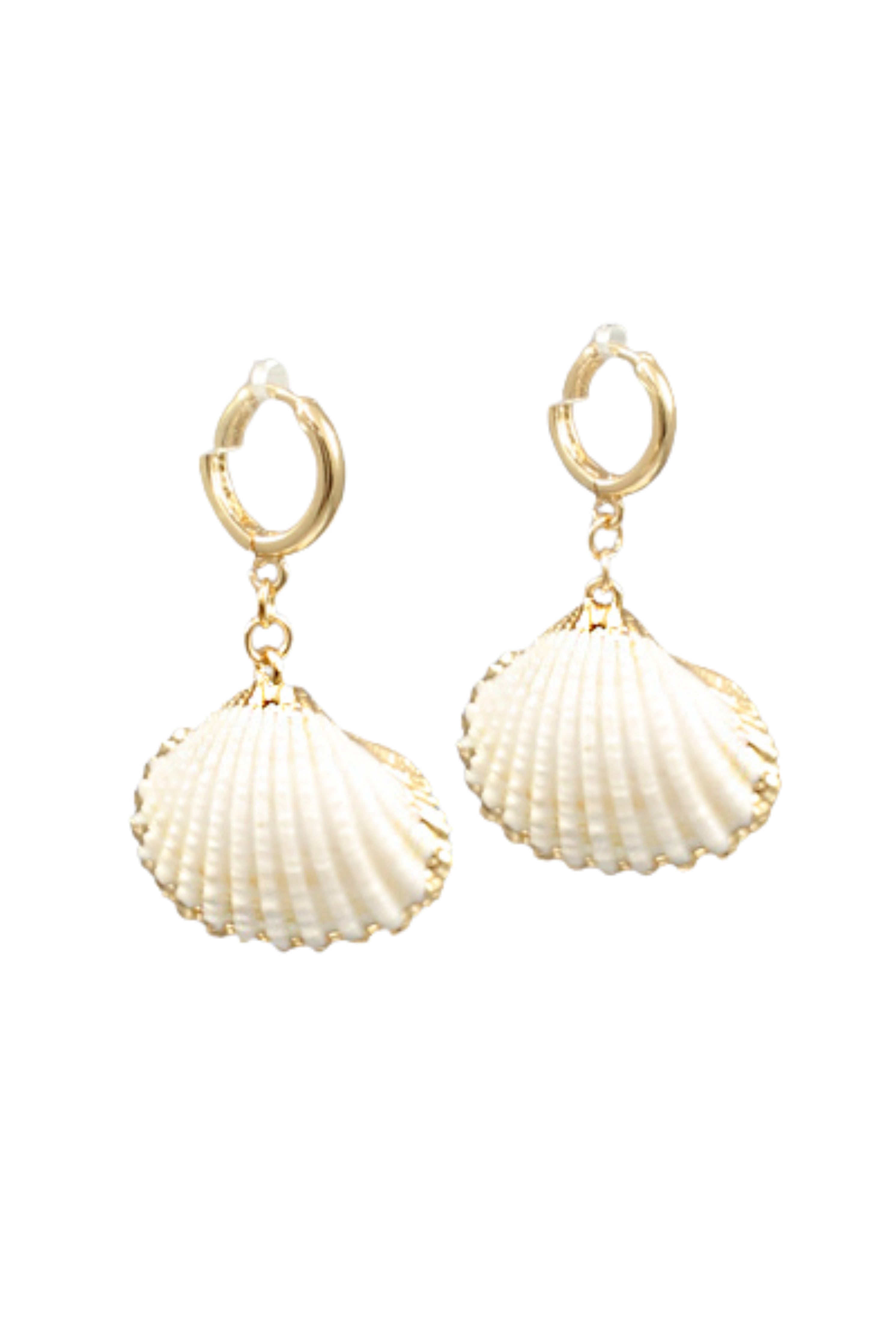 Add a breezy coastal touch to your style with these hoop earrings featuring hanging shell charms. Their delicate detailing and lightweight feel make them perfect for everyday wear or vacation looks. A simple yet standout accessory for beach lovers.
