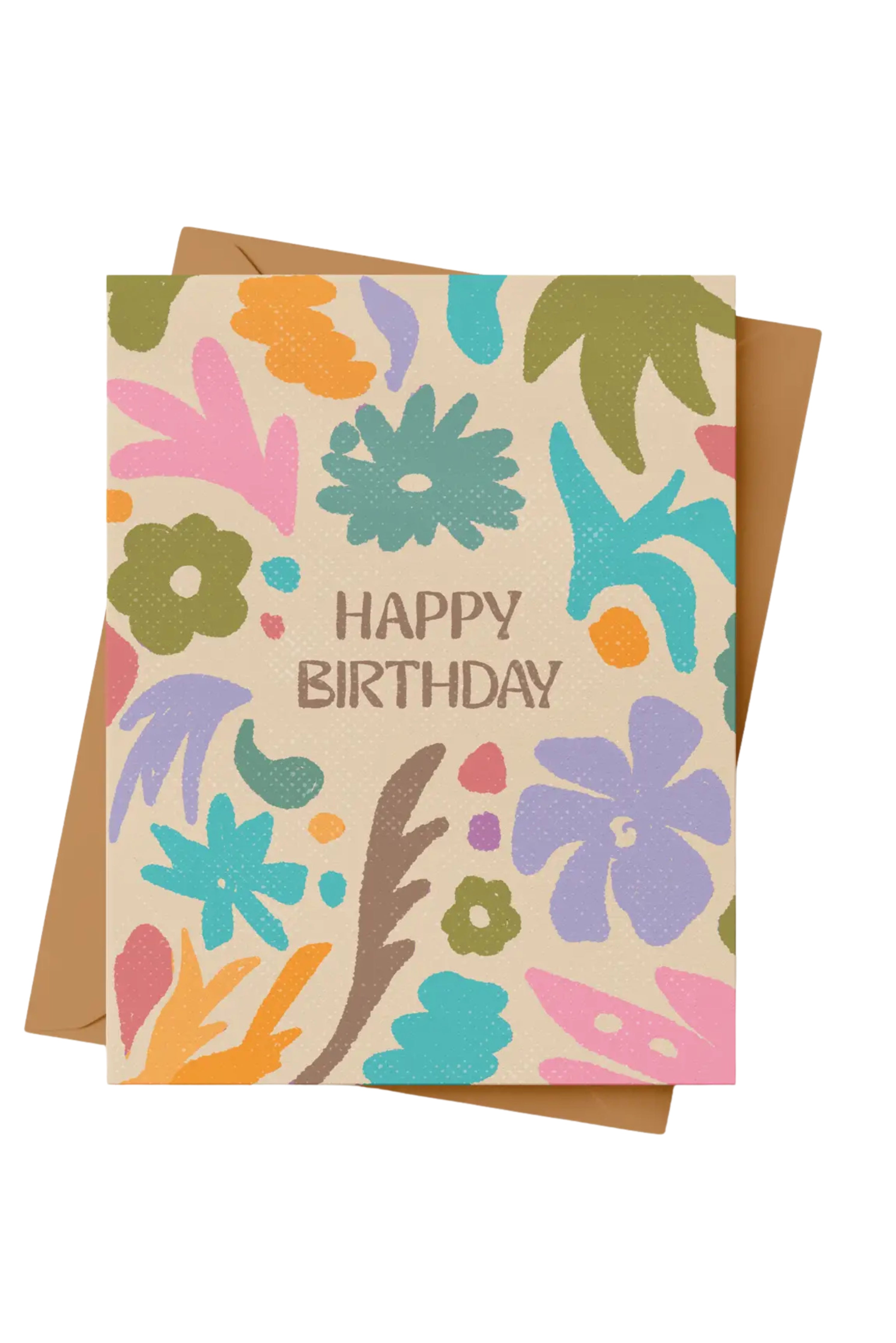A colorful Spring birthday card for women. Featuring a selection of floral elements, this card is a great card to give to a female in your life.