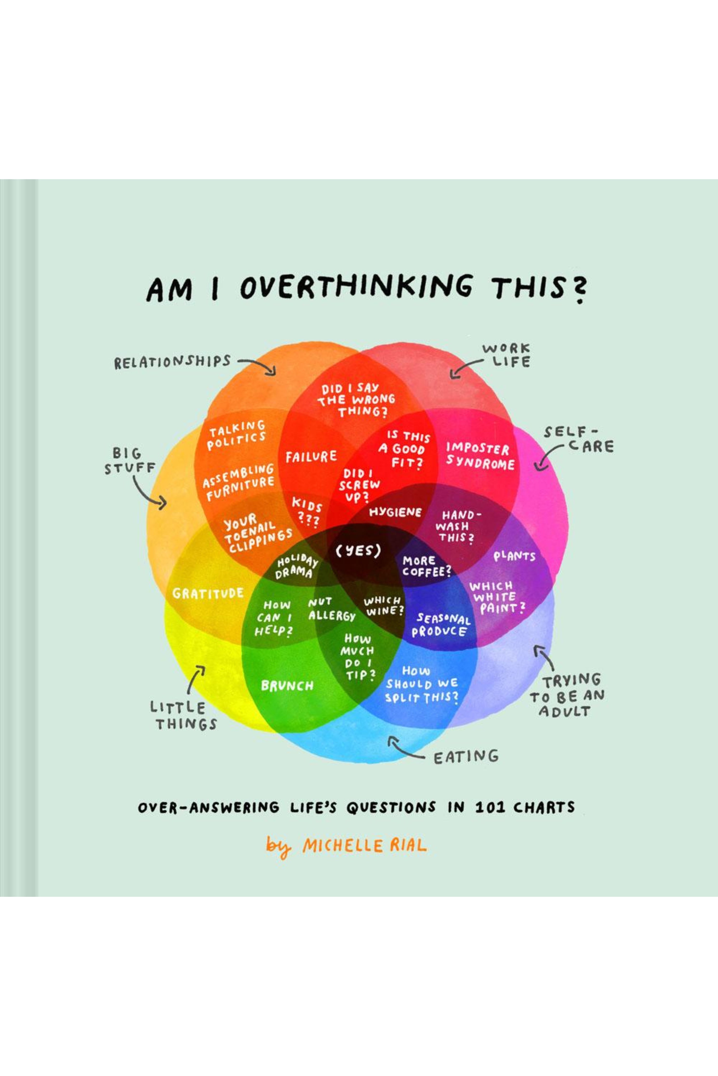 Am I overthinking this? Probably. This is a book of questions with answers, over-answers, and many charts: Did I screw up? How do I achieve work-life balance? Am I eating too much cheese? Do I have too many plants? Like a conversation with your non-judgmental best friend.