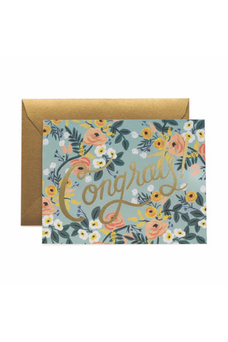 Send your warmest wishes in style with this stunning “Congrats!” card, featuring gold foil script over a garden of peach, white, and yellow blooms. The elegant floral design makes it perfect for weddings, graduations, promotions, or any big milestone. Comes with a matching gold envelope and blank interior for your personal message.