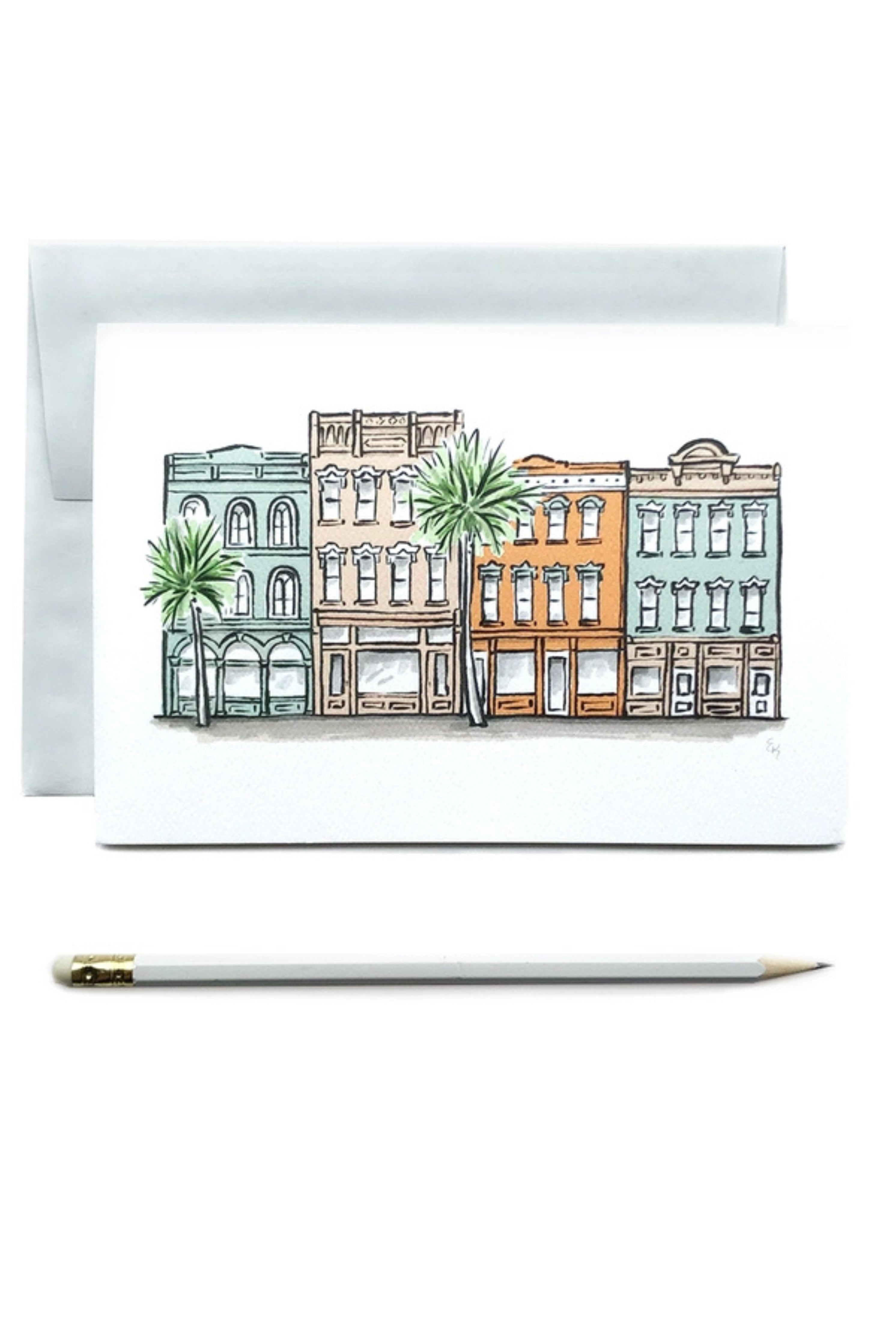 The delicious colors of the Downtown Greeting Card will inspire you to send all of your people a hand-written note! The felt texture of the paper mixed with the lovely architectural illustration make this folded card POP!