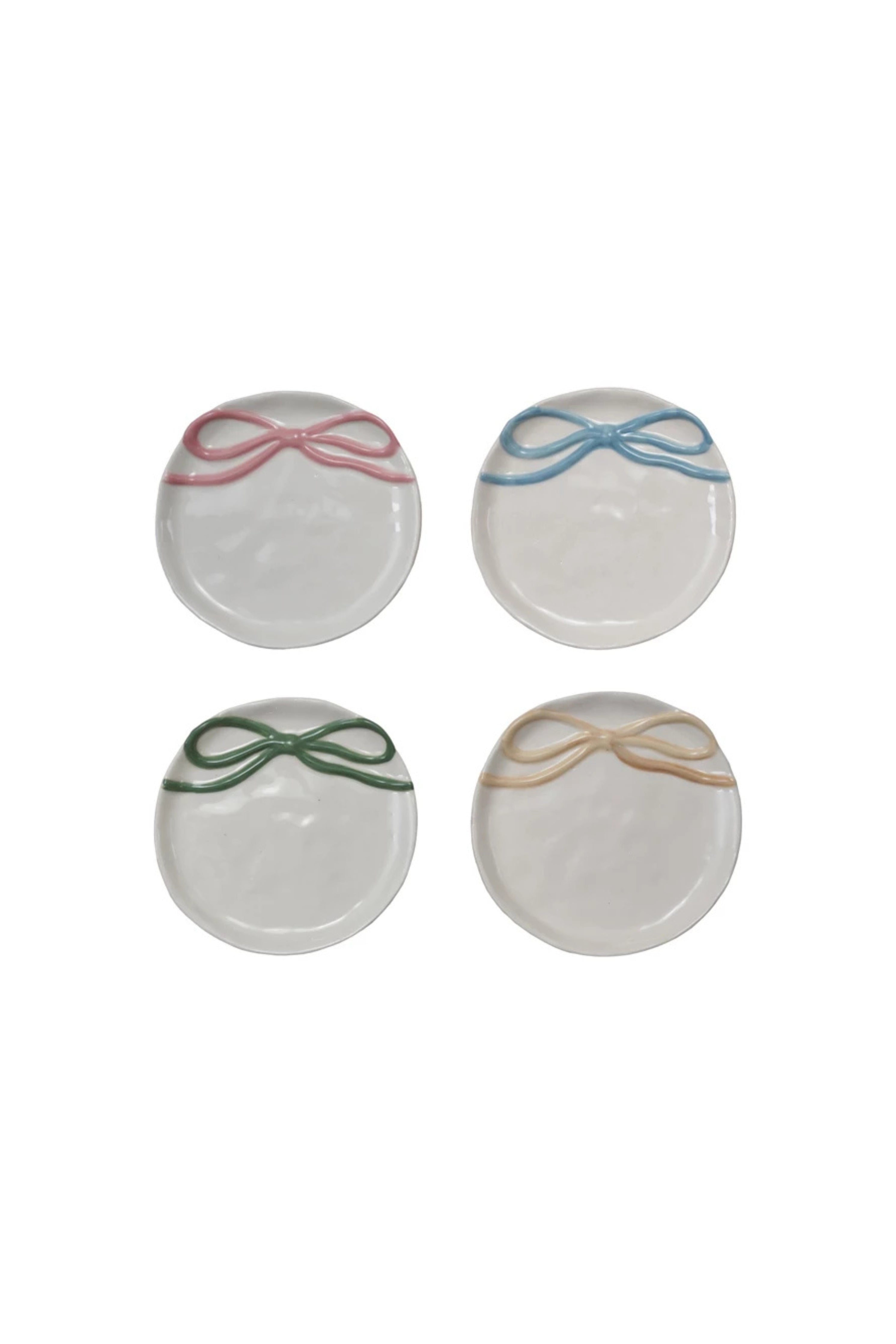 Serve in style with these charming bow tidbit plates, each accented with a delicate raised bow in soft pastel hues. Perfectly sized for appetizers, desserts, or small bites, they add a playful yet elegant touch to any table setting.
