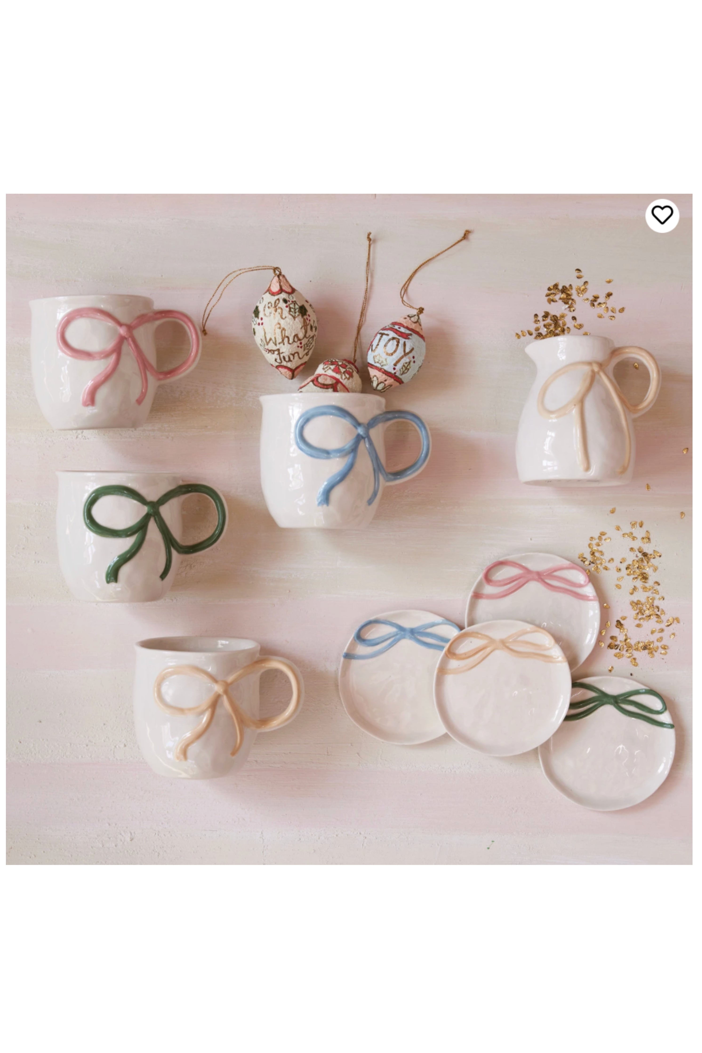 • Accented with a raised bow detail in pastel shades of pink, blue, green, or cream.