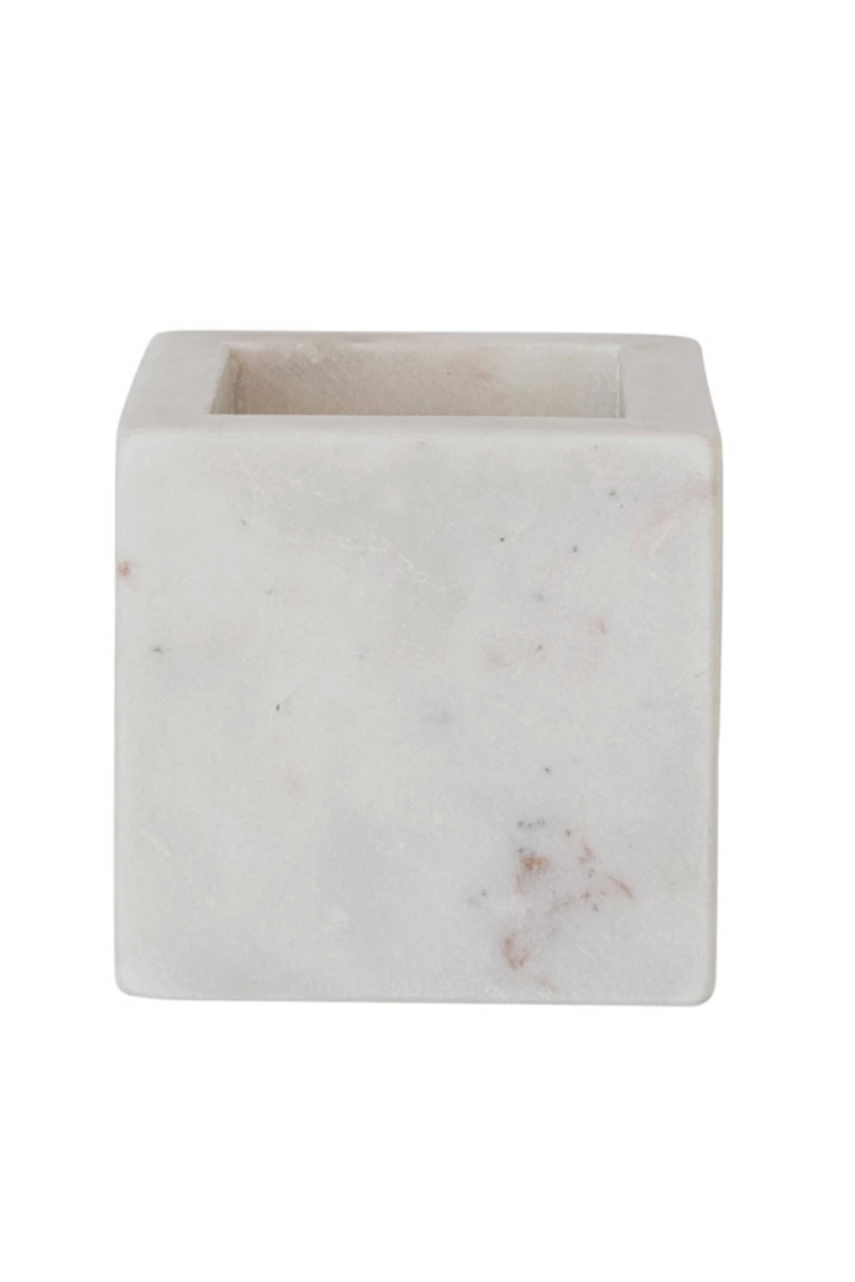 This marble container offers a clean, modern look with timeless appeal. Crafted from solid marble, each piece features natural variations that make it uniquely beautiful while providing a stylish way to organize small essentials. Perfect for countertops, desks, or shelves as both functional storage and décor.