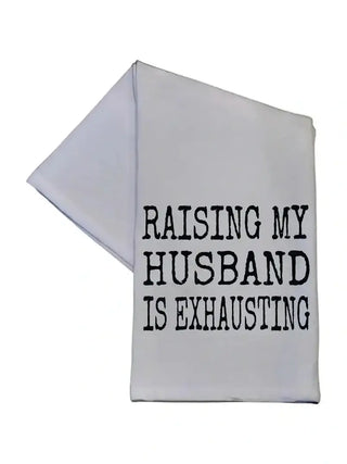 Elevate your kitchen decor and marriage with the Raising My Husband - Tea Towel. Perfect for any wife looking to add some humor and charm to their home, this unique tea towel features a playful yet functional design that will surely make your daily tasks more enjoyable.