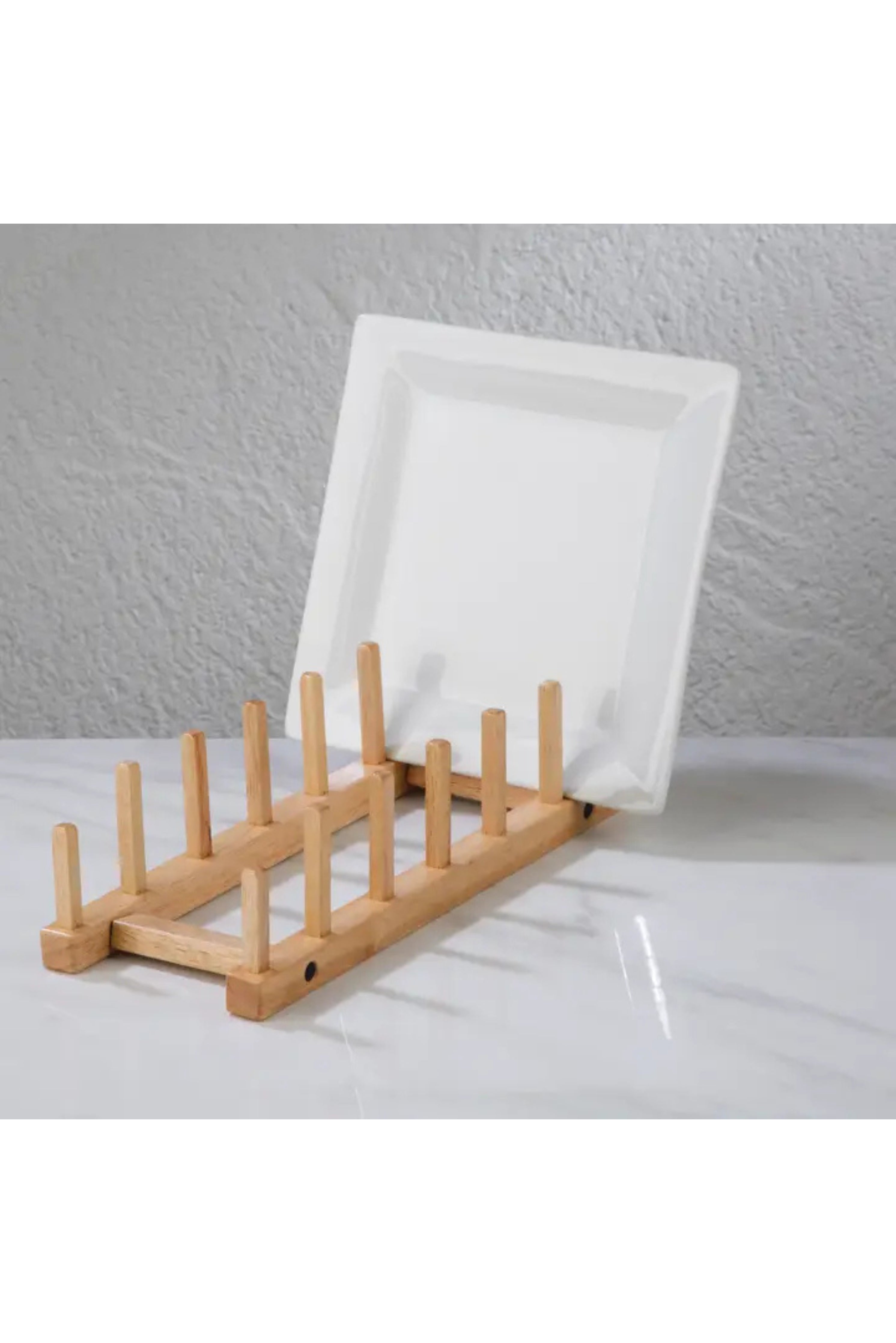 Keep your kitchen organized with this compact wooden dish rack, designed to neatly hold plates, lids, or cutting boards. Made from durable natural wood, it features evenly spaced slots to keep items upright and well-ventilated for faster drying.