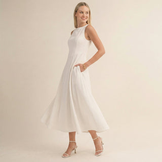Printed V-Neck Pleated Sleeveless Midi Dress