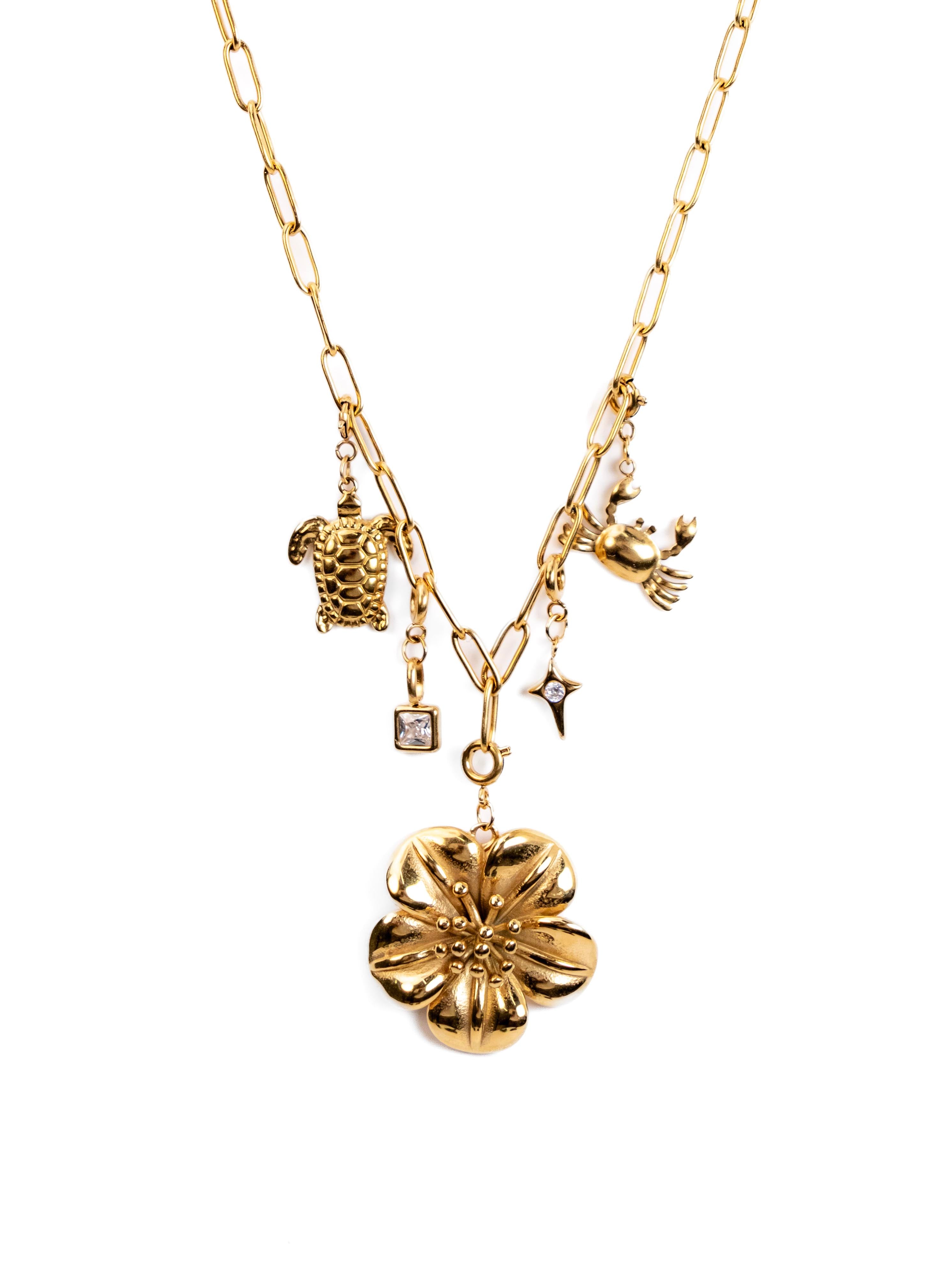 Bring a touch of coastal charm to your jewelry with this gold-tone crab charm. Featuring playful pincers and detailed legs, this piece captures the spirit of the sea and symbolizes protection, resilience, and adventure. Its polished finish ensures a radiant shine, while the waterproof and hypoallergenic design makes it safe for sensitive skin and perfect for everyday wear.