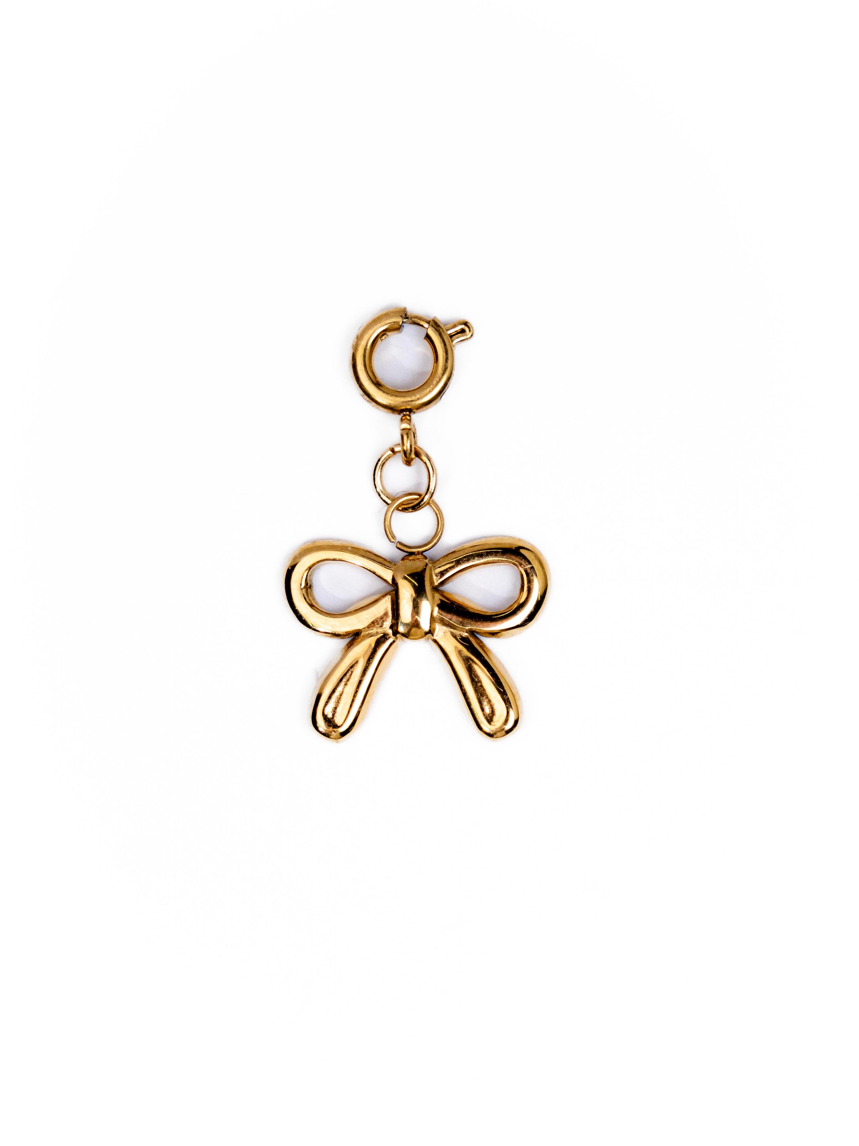 Sweet and elegant, this gold-tone bow charm adds a touch of femininity and playfulness to any jewelry design. Its delicate ribbon-inspired shape makes it perfect for layering on bracelets, necklaces, or earrings.